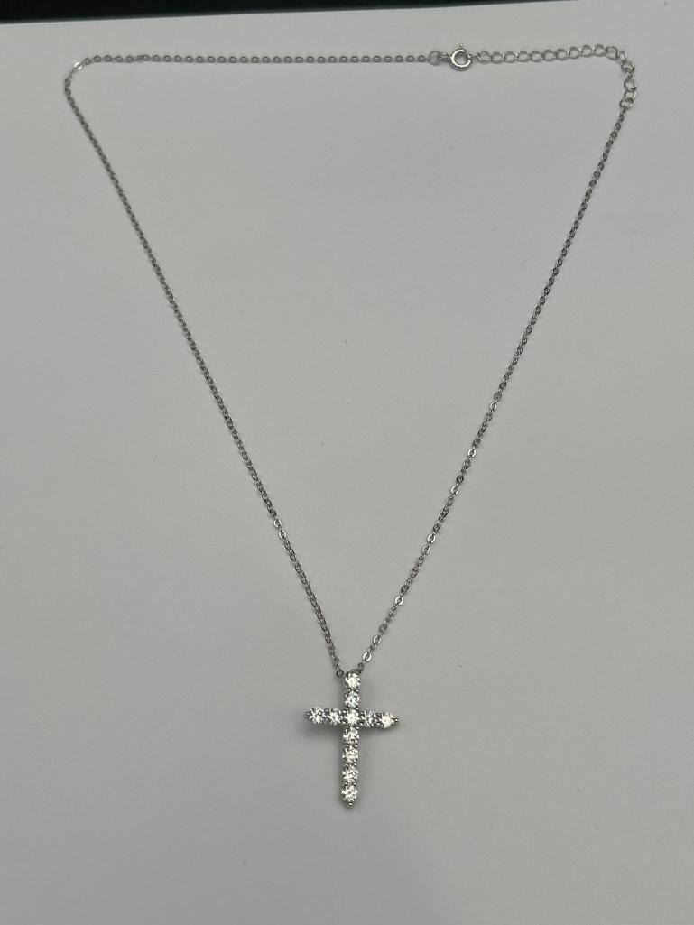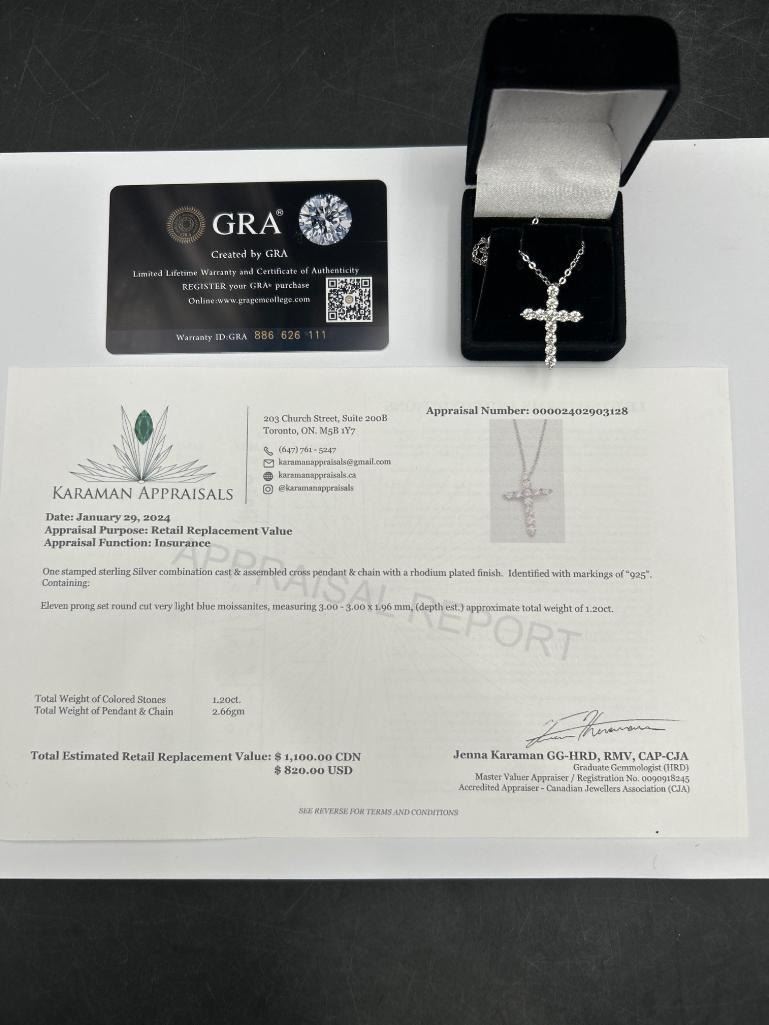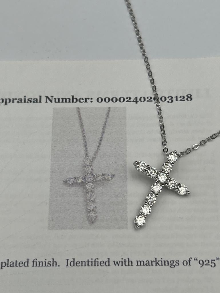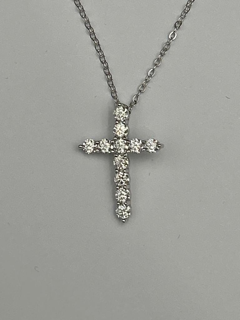 1.10 CT TW GRA CERTIFIED ROUND BRILLIANT CUT MOISSANITE STONES VVS D COLOR WITH 11 MOISSANITE STONES SET IN A CROSS SHAPE SET IN 925 SILVER PENDANT RETAIL VALUE $1,100.00
