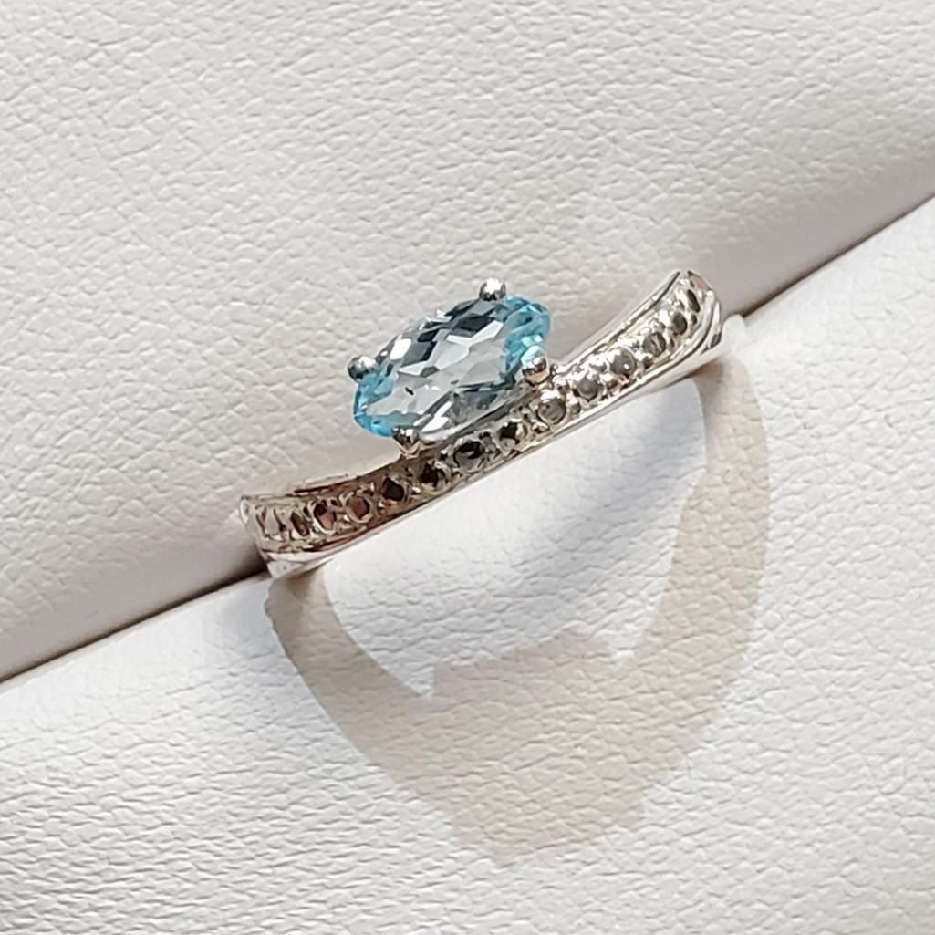 Silver Blue Topaz Ring (~Size 0) (~length 0 inches) (~weight 2.82g), Suggested Retail Value $100