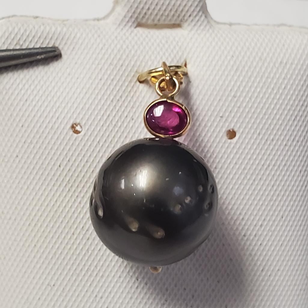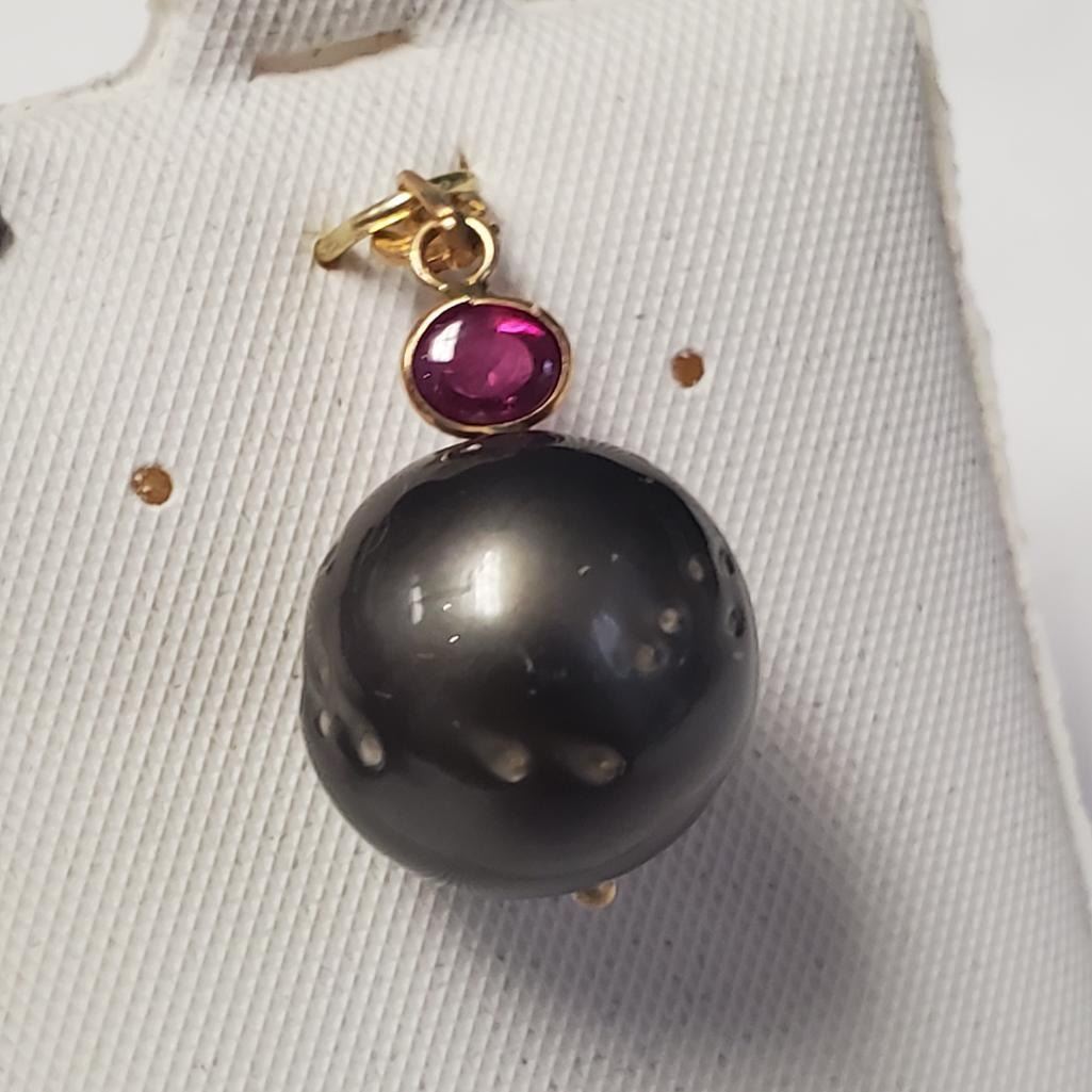 14K Yellow Gold South Sea Pearl And Ruby Pendant, Suggested Retail Value $1000