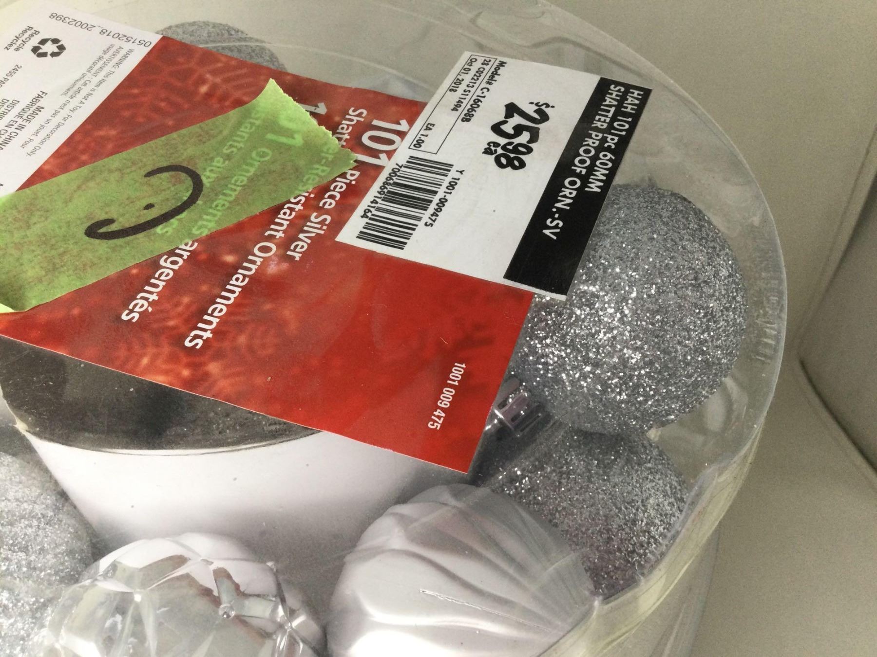 101 Piece Silver Shatter-Resistant Ornaments