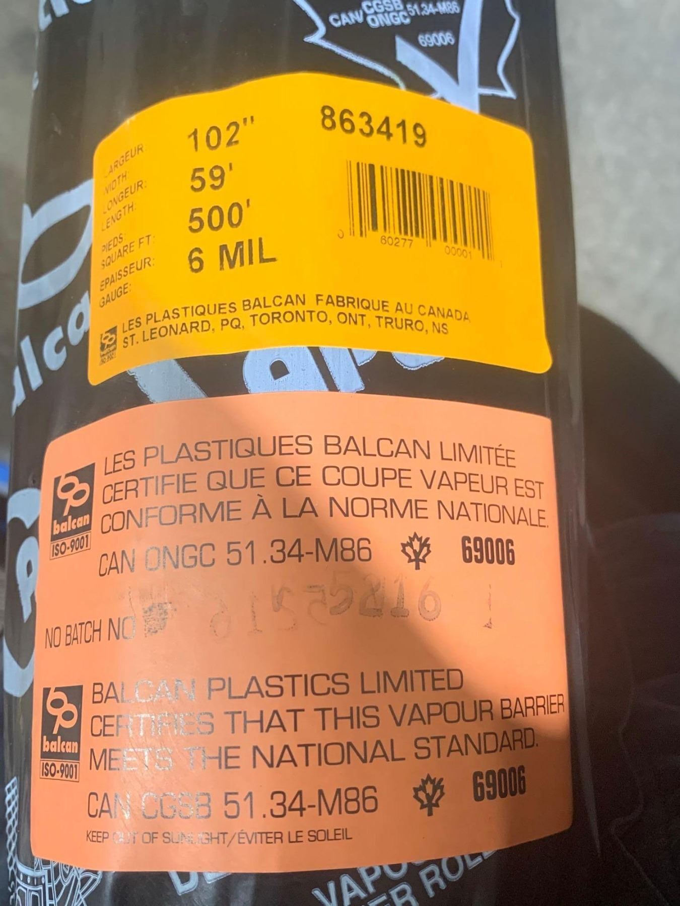 102" x 59' Vapour Barrier Poly Roll 6 Mil 500 Sq Ft Total