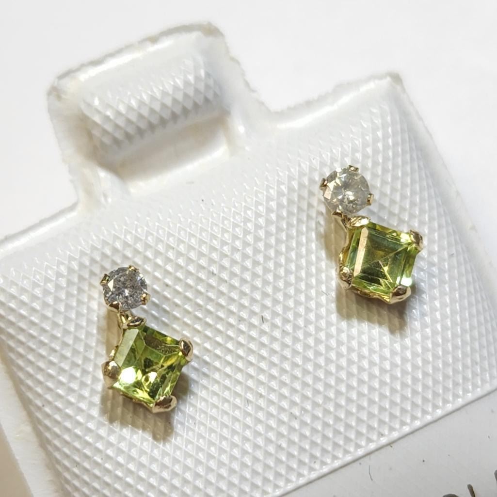 10K Gold Peridot & Diamond Princess Cut Earrings Suggested Retail Value $400.00