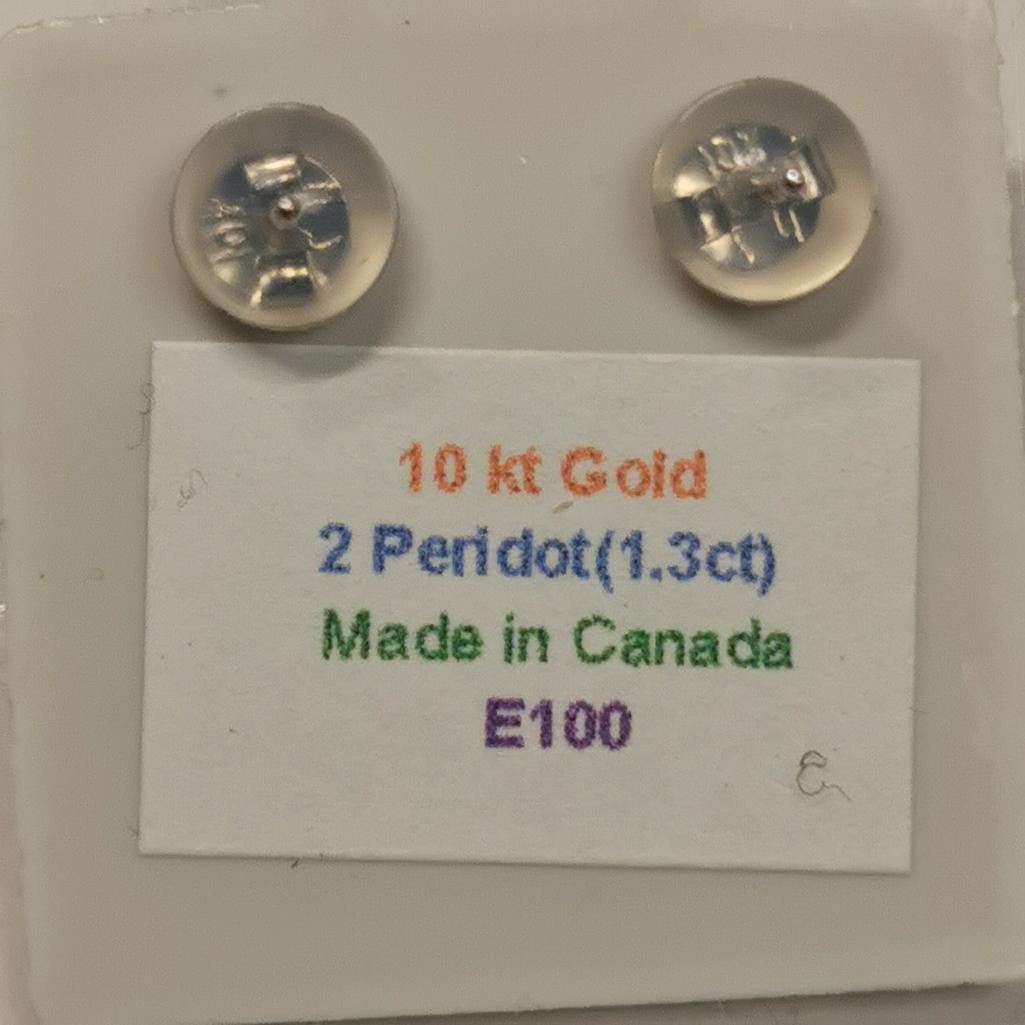 10K White Gold 2 Peridot(1.3ct) Earrings, Made in Canada, Suggested Retail Value $200