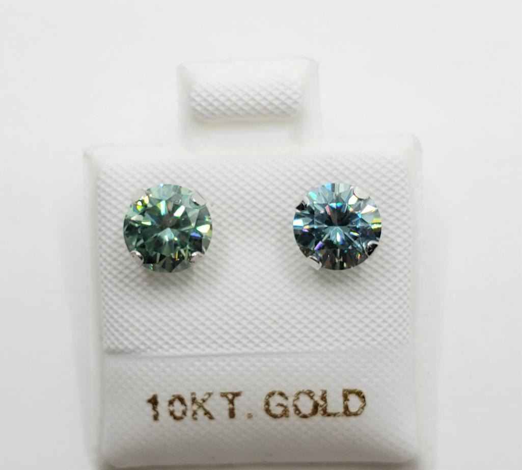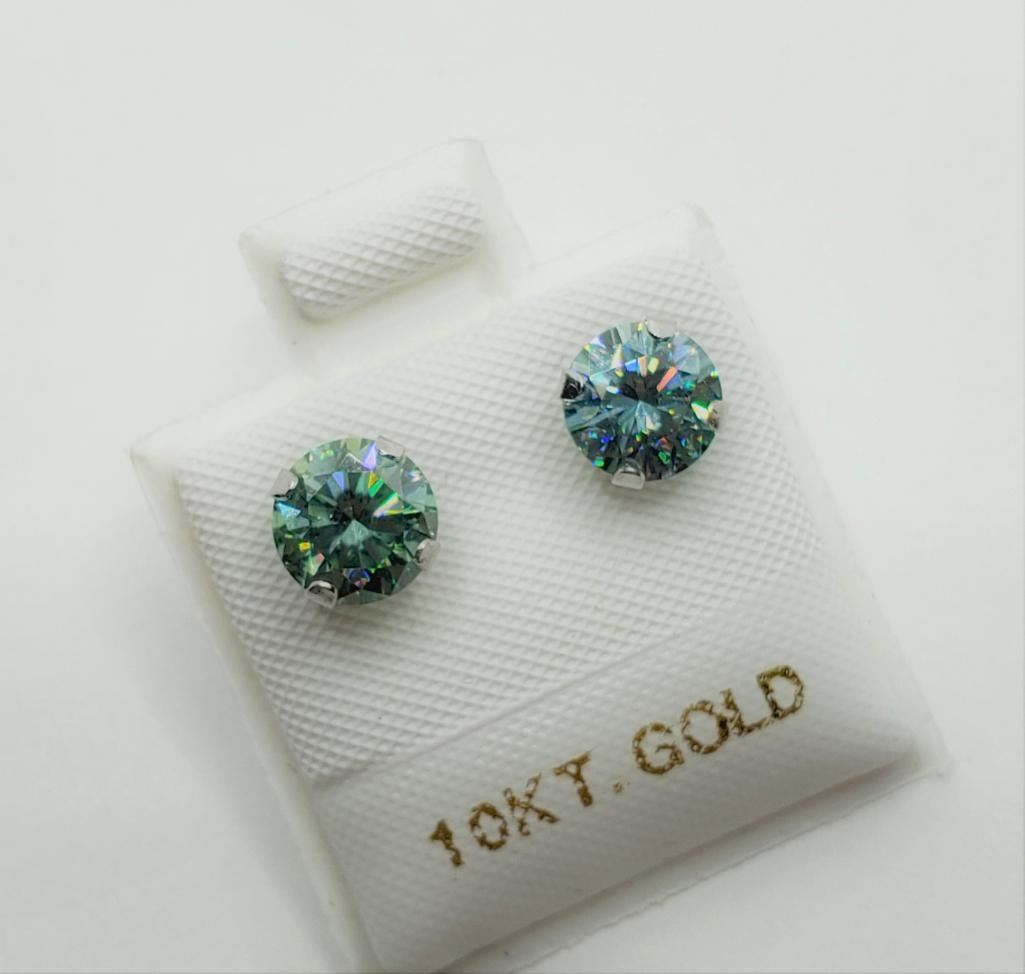 10K White Gold Bluish Green Moissanite(1.6ct) Earrings , Made in Canada, Suggested Retail Value $260
