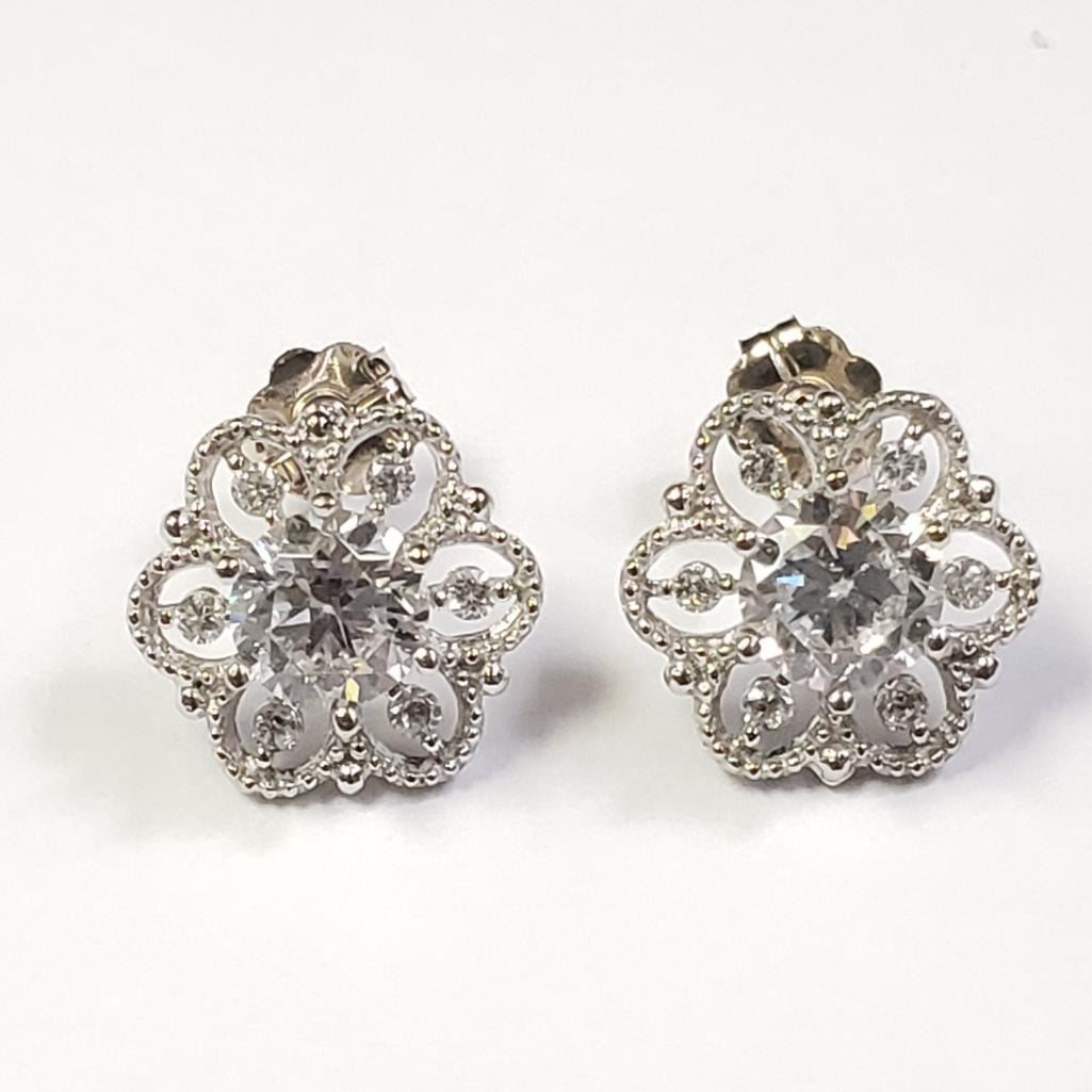 10K White Gold Cz Earrings (~Size )(Ring is resizable for $40) (~length inches) (~weight 1.5g), Suggested Retail Value $900