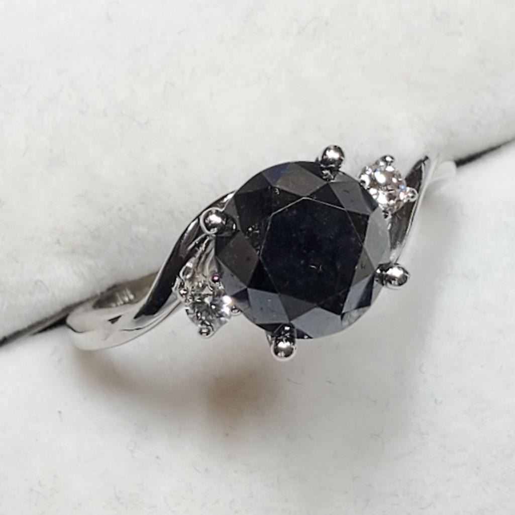 10K White Gold Fancy Black Diamond(2.4ct) 2 Side Diamond(0.1ct) Ring (~weight 3g), Made in Canada, Appraised Retail $3700 (Estimated Selling Price from $480 to $960)