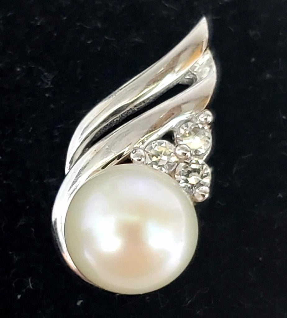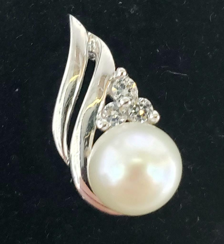 10K White Gold Peral And Cz Pendant, Suggested Retail Value $760