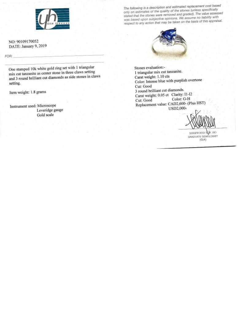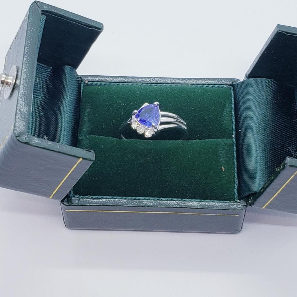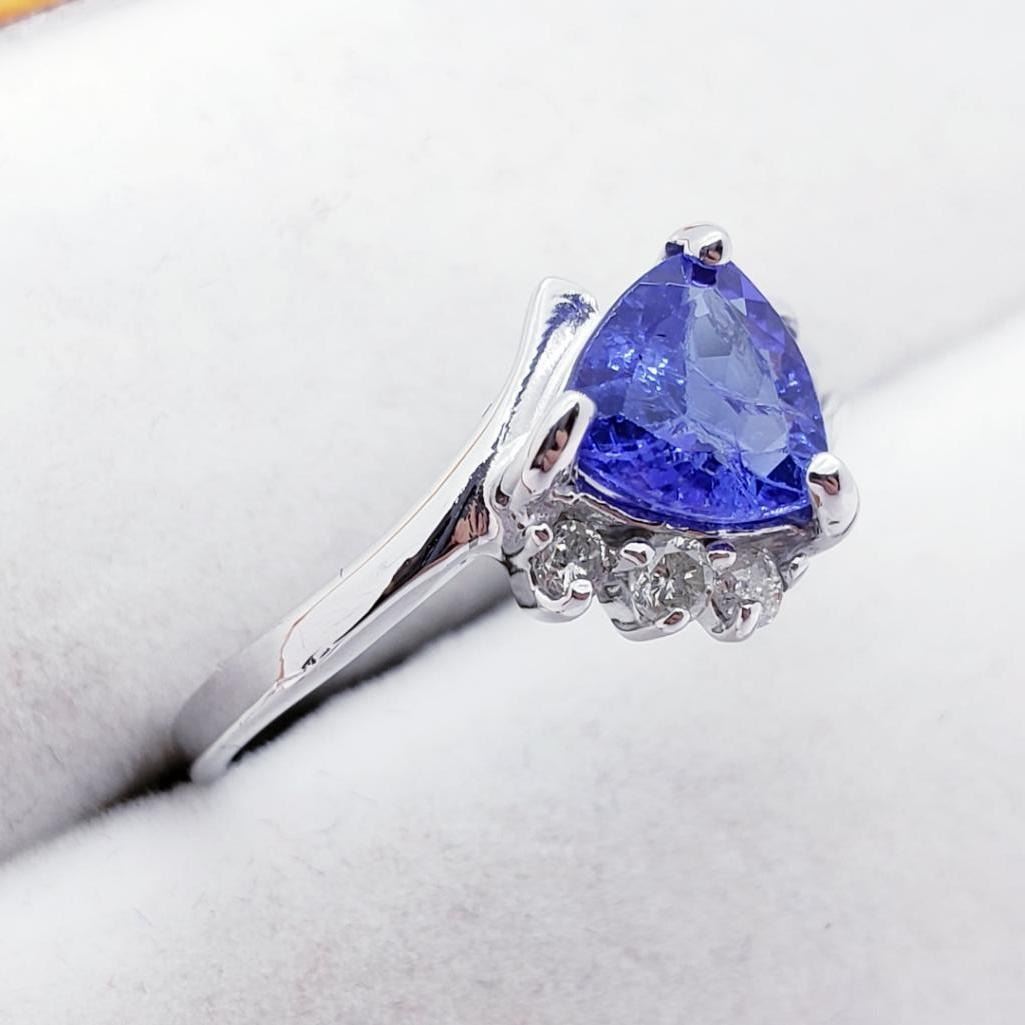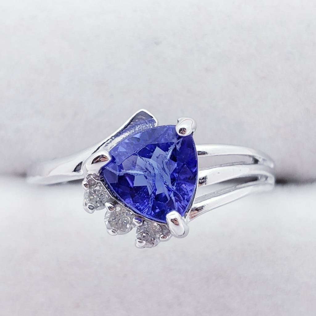 10K White Gold Tanzanite(1.1ct) 3 Round Diamonds(0.05ct) Ring (~Size 6.5)(Ring is resizable for $40) (~weight 1.8g), Insurance Value $2600 (Estimated Selling Price from $390 to $780)