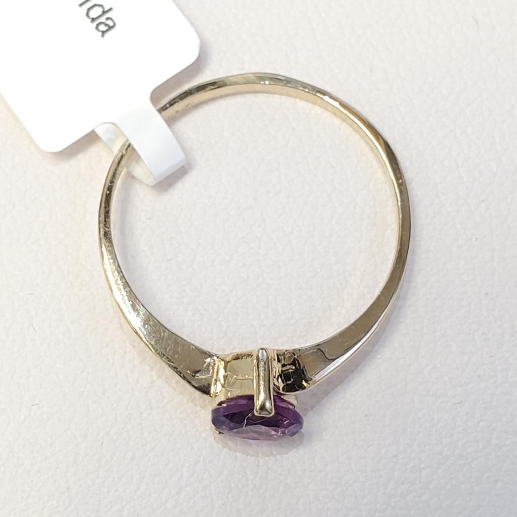 10K Yellow Gold Amethyst(0.3ct) With A Bypass Shank Ring (~Size 6)(Ring is resizable for $40) (~weight 0.88g), Made in Canada, Appraised Retail $860