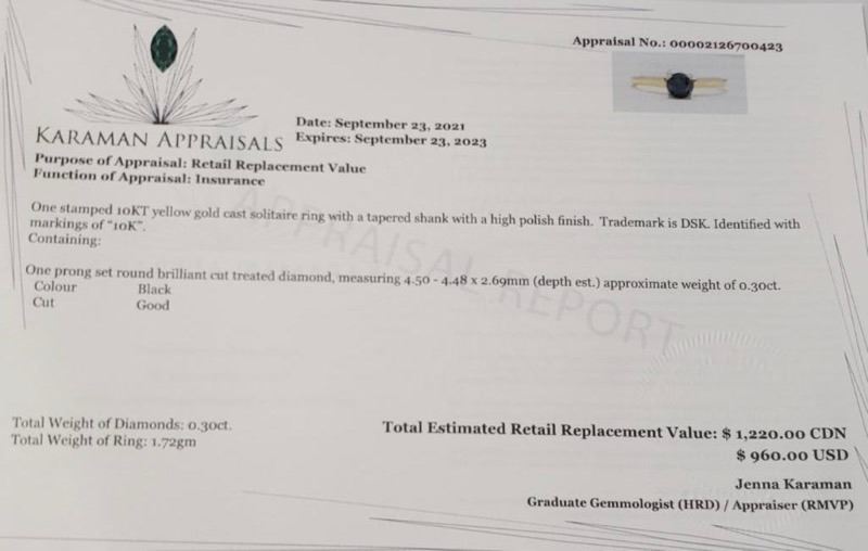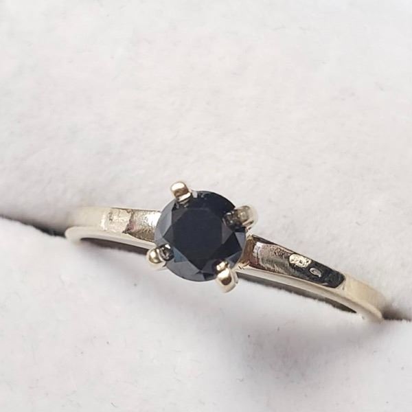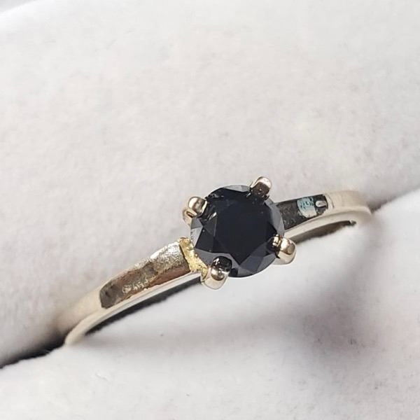 10K Yellow Gold Black Diamond(0.3ct) Ring (~Size 6)(Ring is resizable for $40) (~length inches) (~weight 1.72g), Made in Canada, Appraised Retail $600