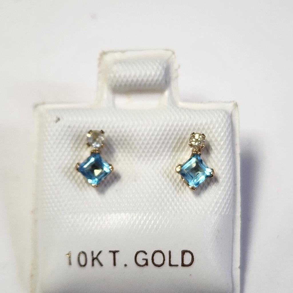 10K Yellow Gold Blue Topaz (0.44ct) Diamond(0.06ct) Earrings, Made in Canada, Suggested Retail Value $500