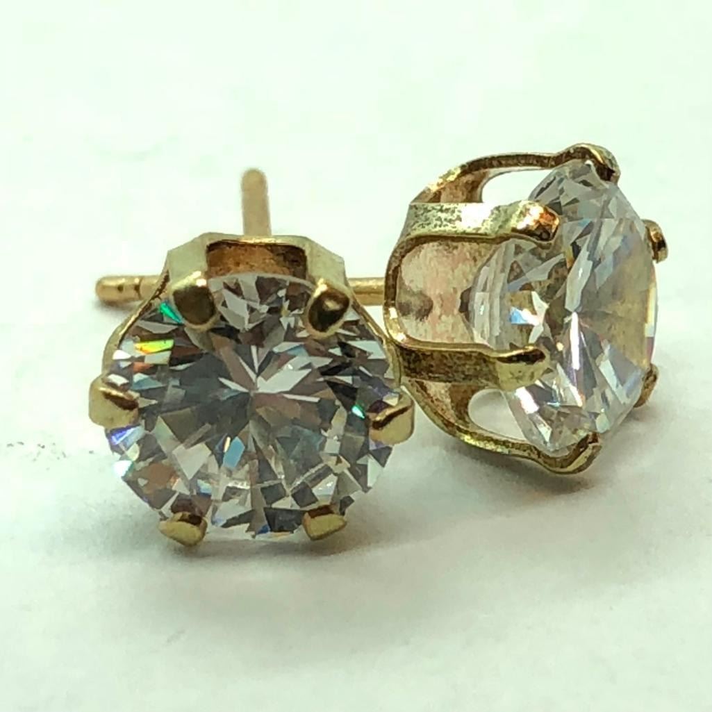 10K Yellow Gold Cubic Zirconia(6.5mm sizects) Earrings, Made in Canada, Suggested Retail Value $220 (Estimated Selling Price from $33 to $66)