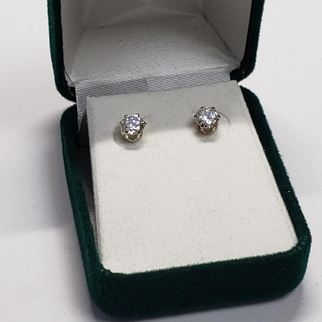 10K Yellow Gold Cubic Zirconia Earrings, Made in Canada