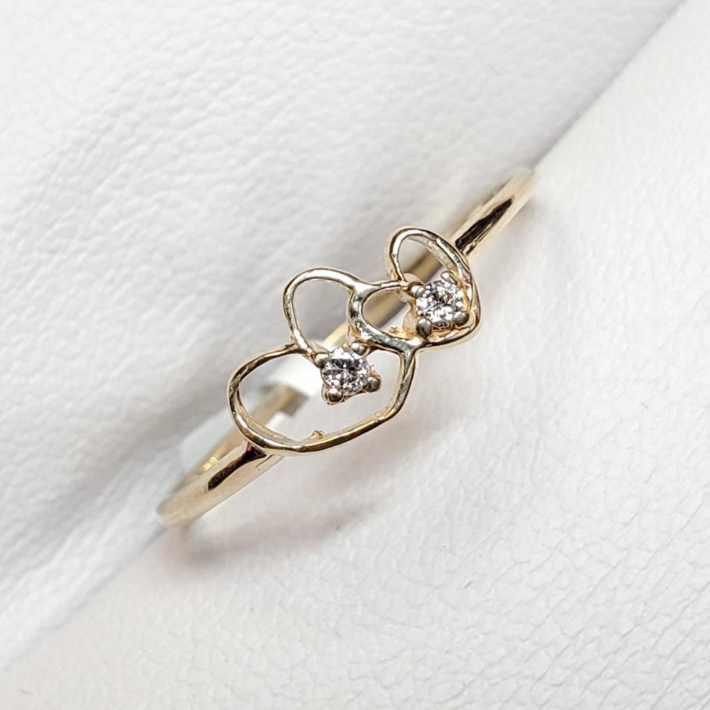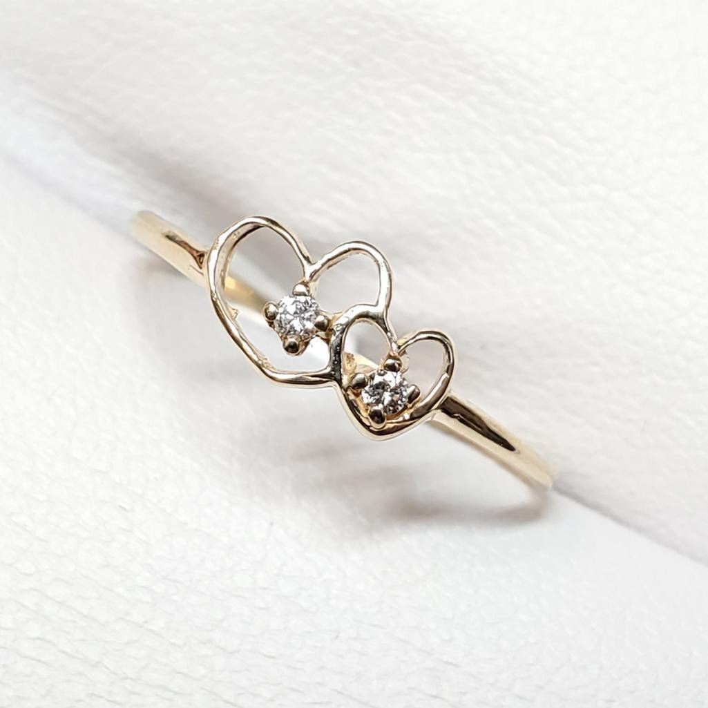 10K Yellow Gold Diamond(0.03ct) 2 Hearts Ring (~Size 6.75)(Ring is resizable for $40), Made in Canada, Suggested Retail Value $600 (Estimated Selling Price from $90 to $180)