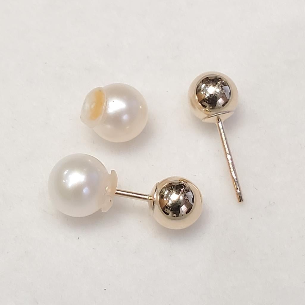 10K Yellow Gold F.W. Pearl, 2 In 1 Reversible Earrings, Made in Canada, Suggested Retail Value $200