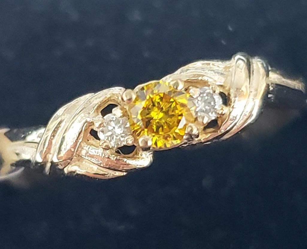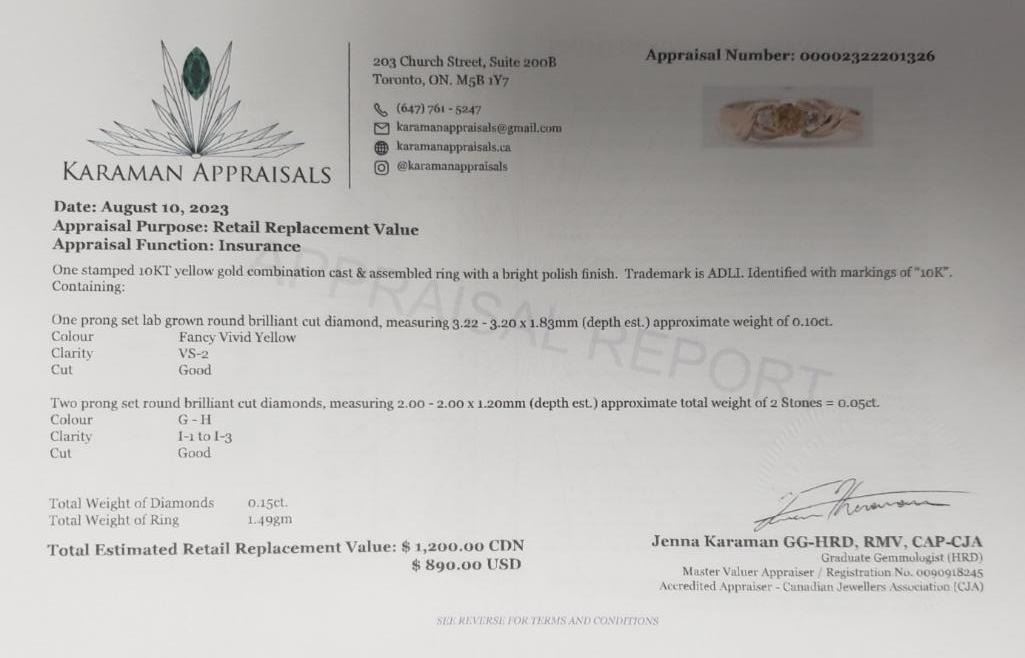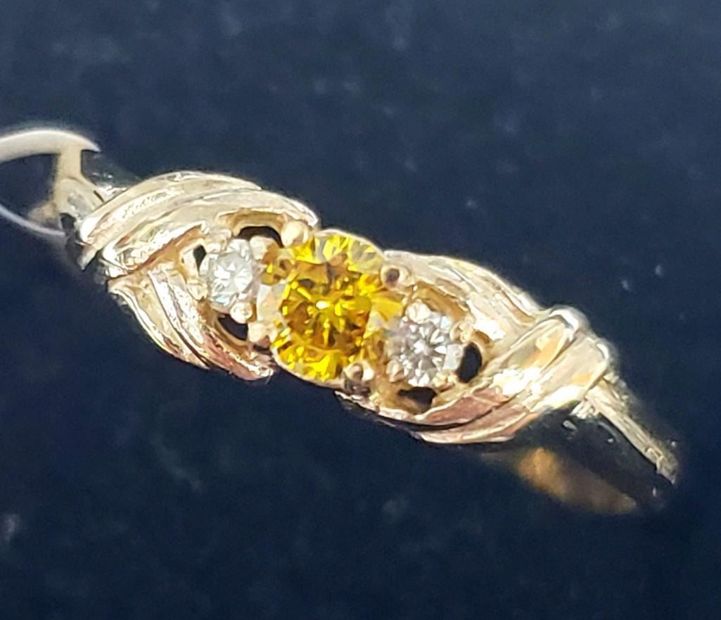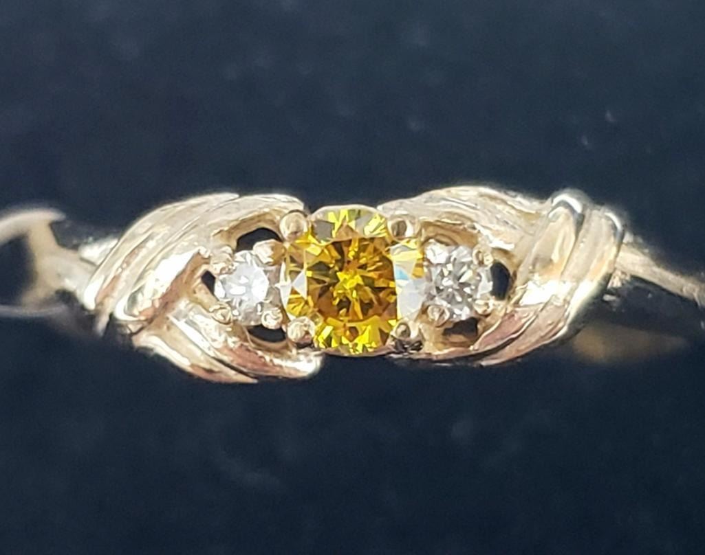 10K Yellow Gold Lab Grown Yellow Diamond App(0.1ct) Diamond(0.05ct) Ring (~Size 6) (~weight 1.49g), Made in Canada, Appraised Retail $1200