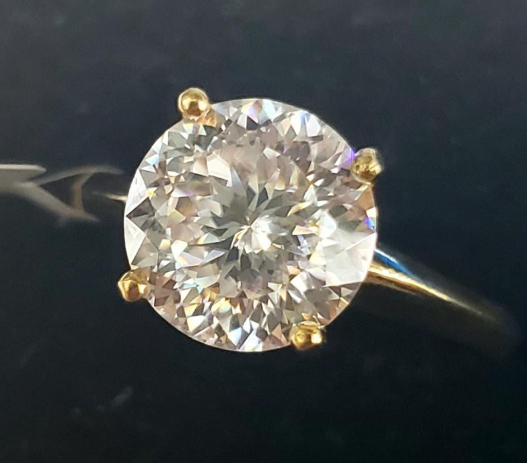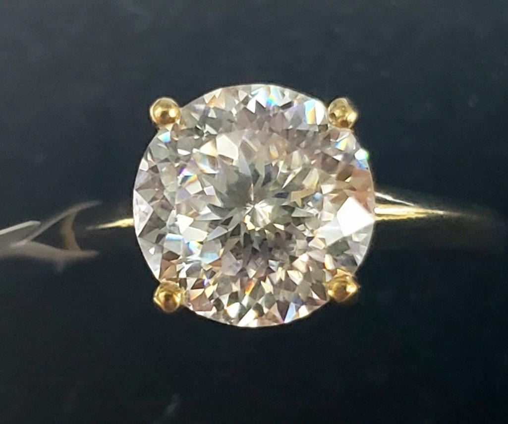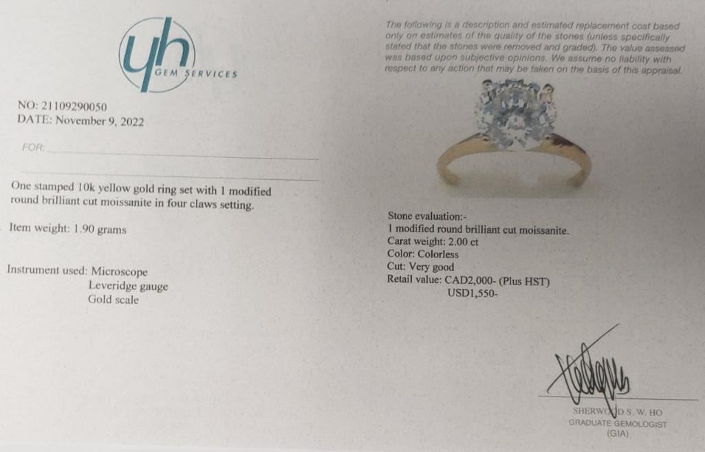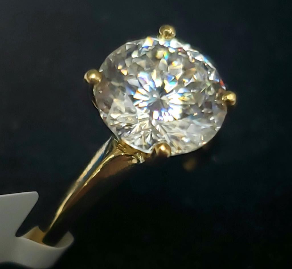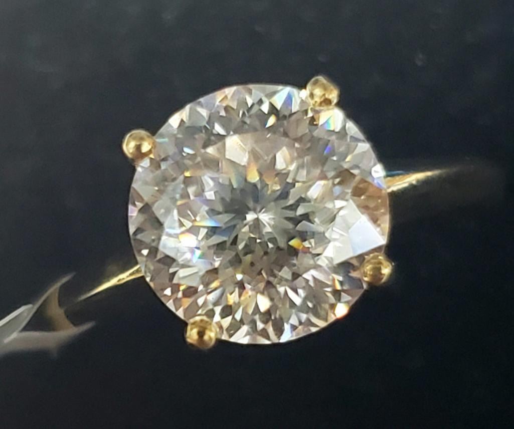 10K Yellow Gold Moissanite(2ct) Ring (~Size 5.5)(~length 0 inches) (~weight 1.9g), Made in Canada, Appraised Retail $2000