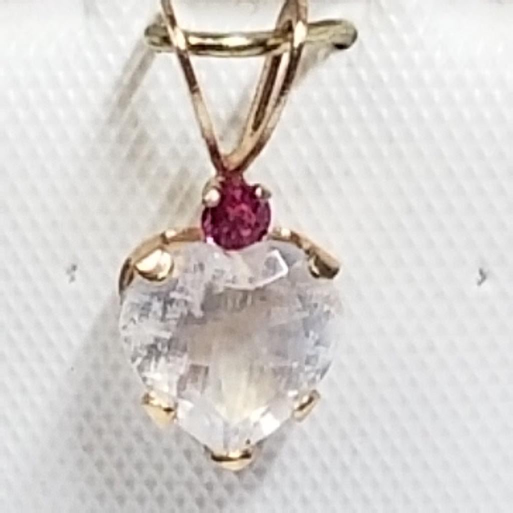 10K Yellow Gold Moonstone(0.65cts) Ruby Pendant, Made in Canada, Suggested Retail Value $160