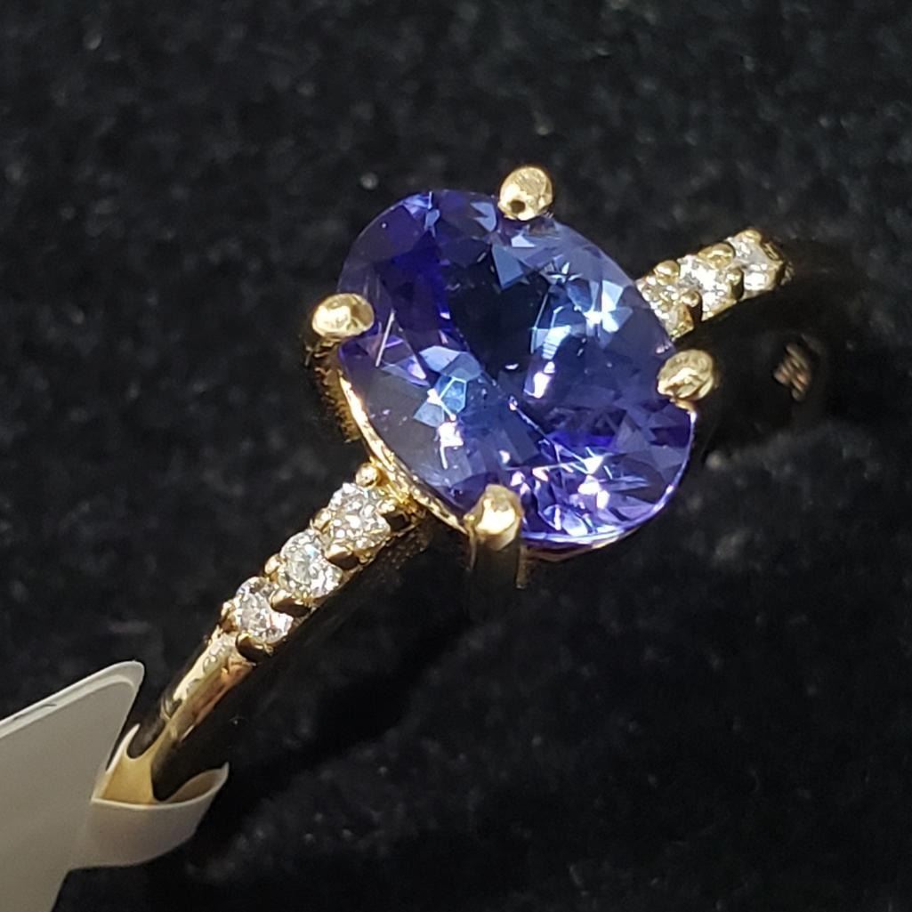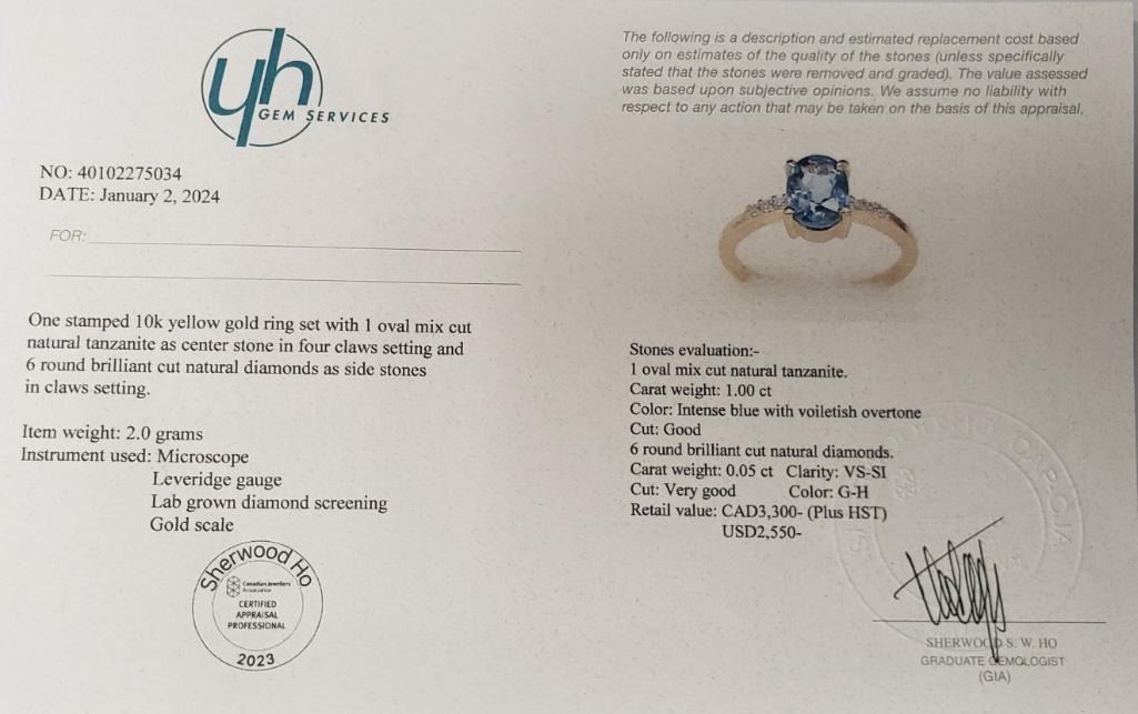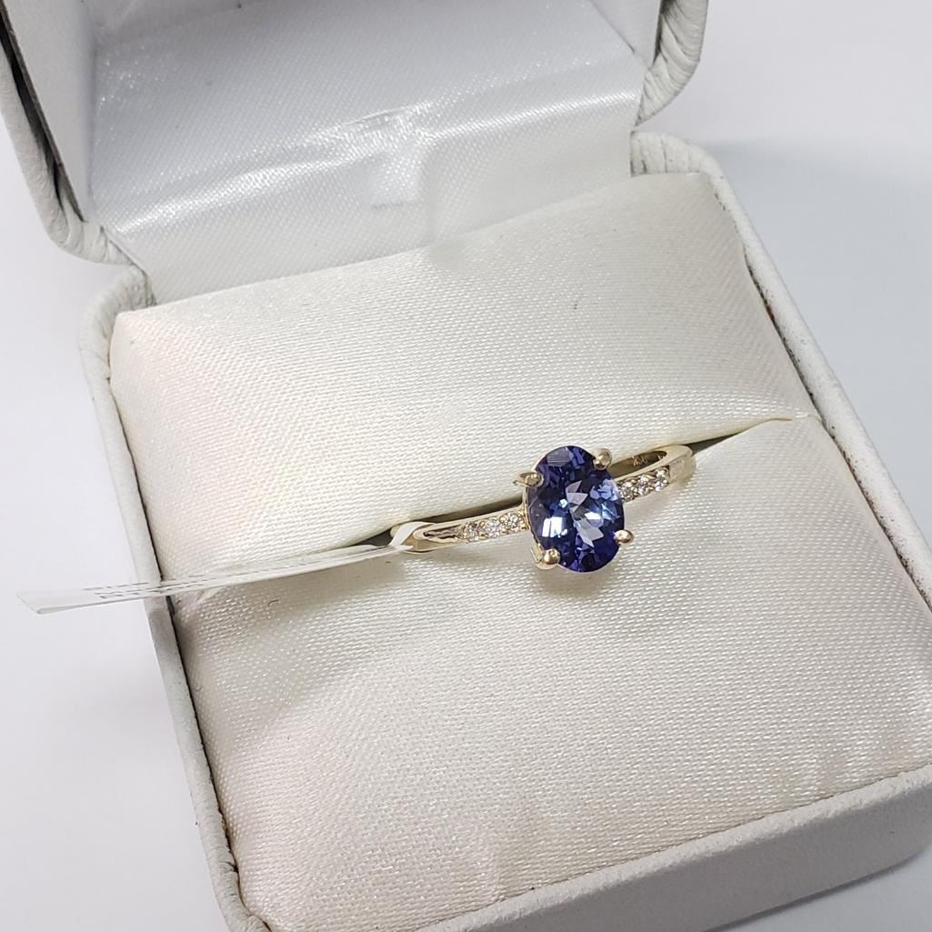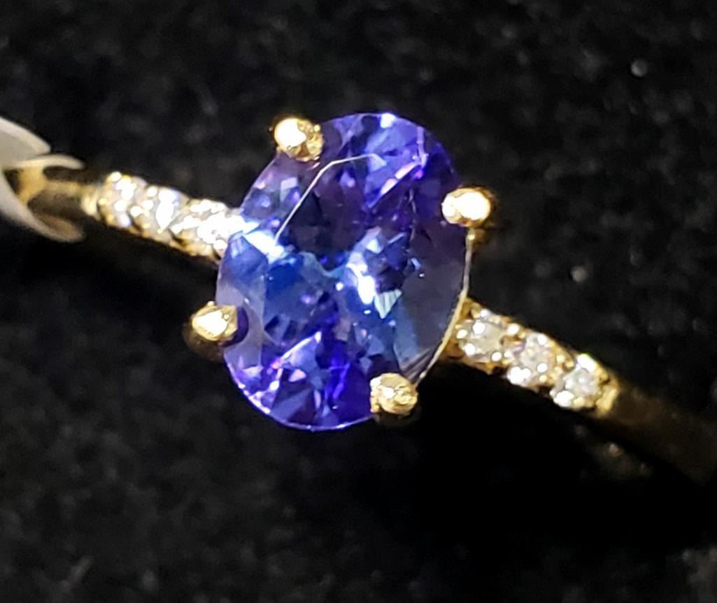 10K Yellow Gold Natural Tanzanite(1ct) Diamond(0.05ct) Ring (~Size 6.5) (~weight 2g), Made in Canada, Appraised Retail $3300