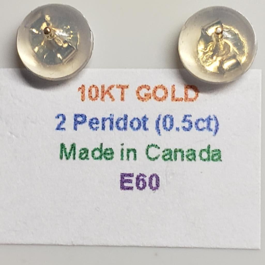 10K Yellow Gold Peridot(0.5ct) Earrings, Made in Canada, Suggested Retail Value $120