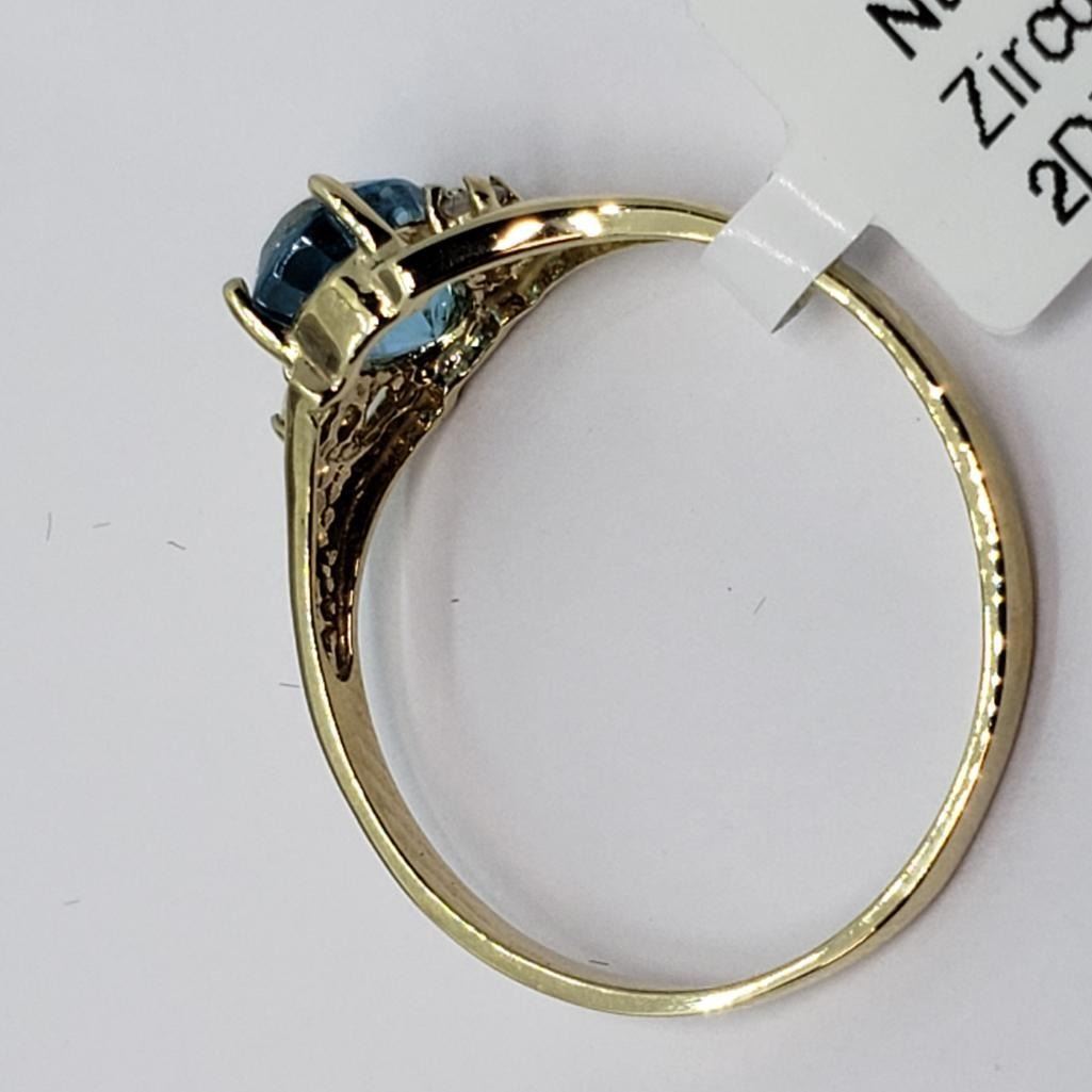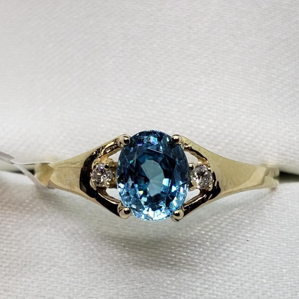 10K Yellow Gold Rare Blue Zircon(1ct) 2 Diamond(0.02ct) Ring (~Size 6) (~weight 1.3g), Made in Canada, Insurance Value $1000 (Estimated Selling Price from $90 to $180)