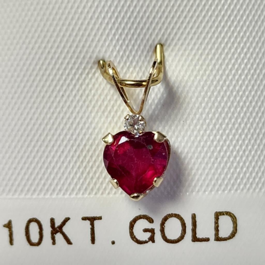 10K Yellow Gold Ruby(1ct) Diamond(0.03ct) Pendant (~Size )(Ring is resizable for $40) (~length inches), Made in Canada, Suggested Retail Value $400