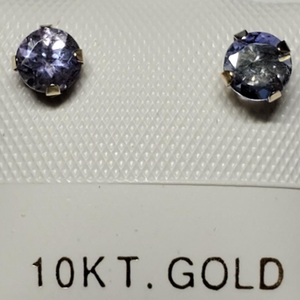 10K Yellow Gold Tanzanite(0.66ct) Fw Pearl 2 In 1 Earrings, Made in Canada