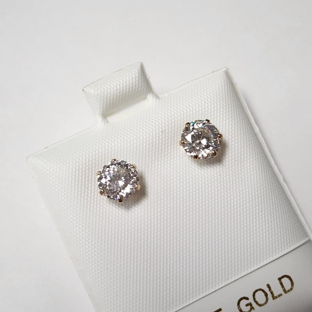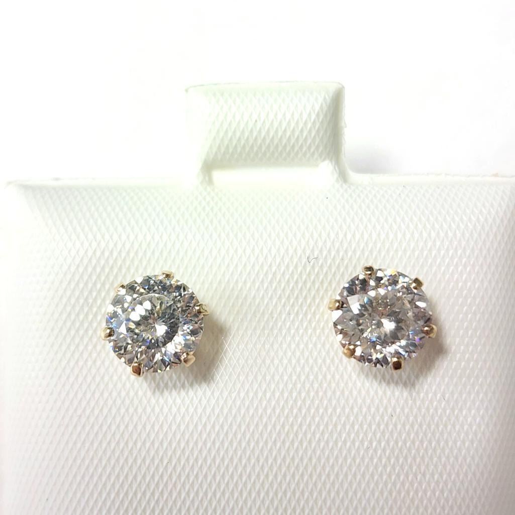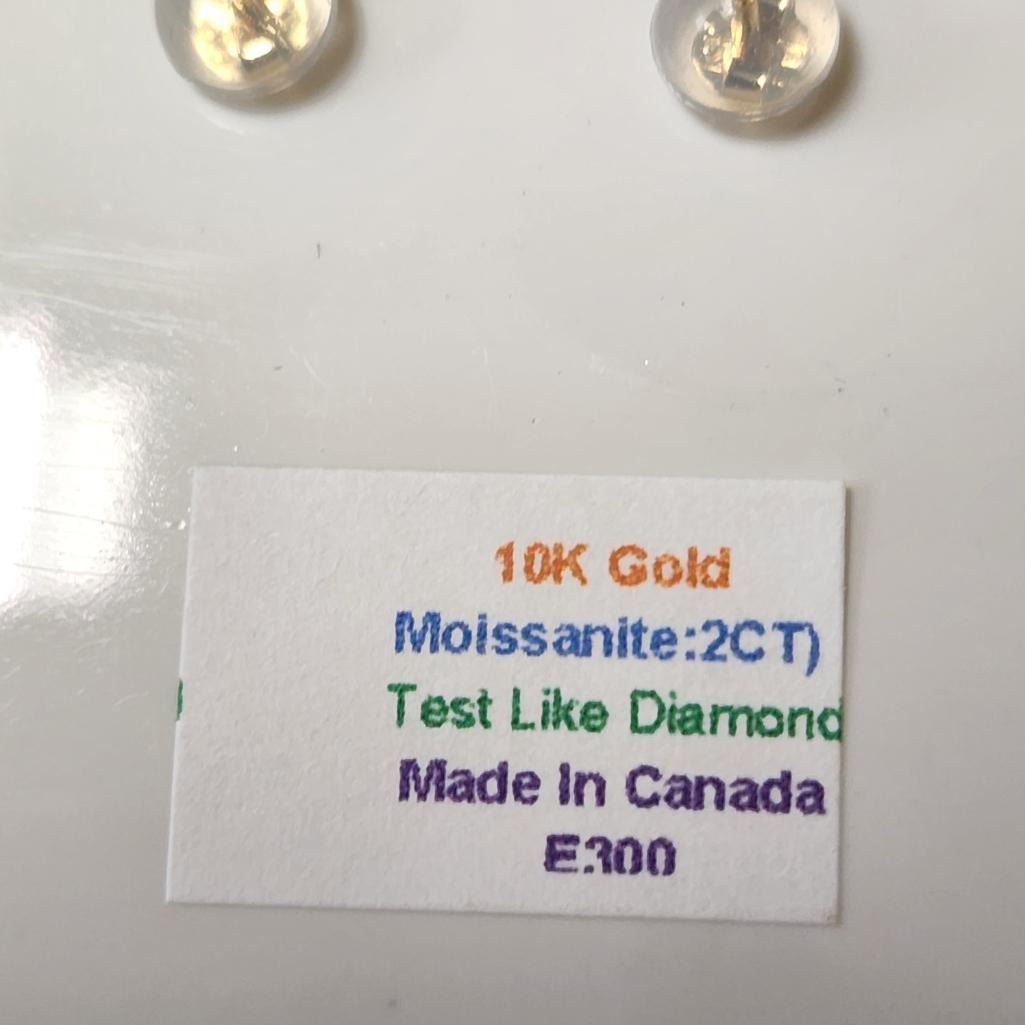 10K Yellow Gold White Moissanite Test Like Diamond Looks Better(2ct) Earrings (~weight 0.9g), Made in Canada, Appraised Retail $800