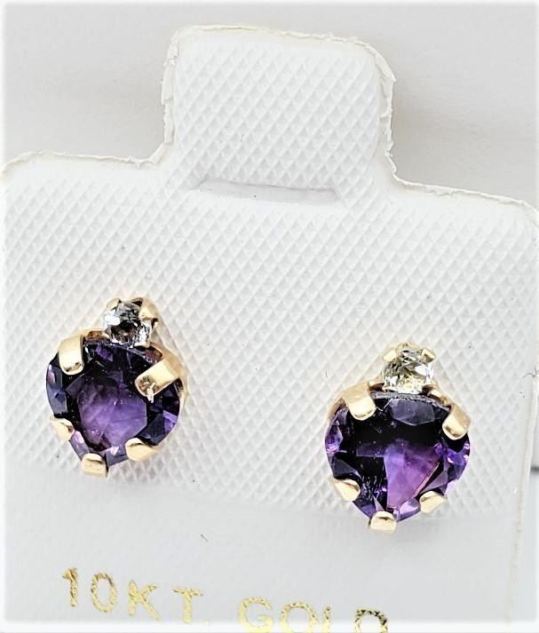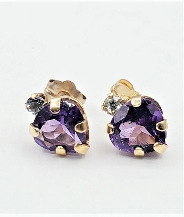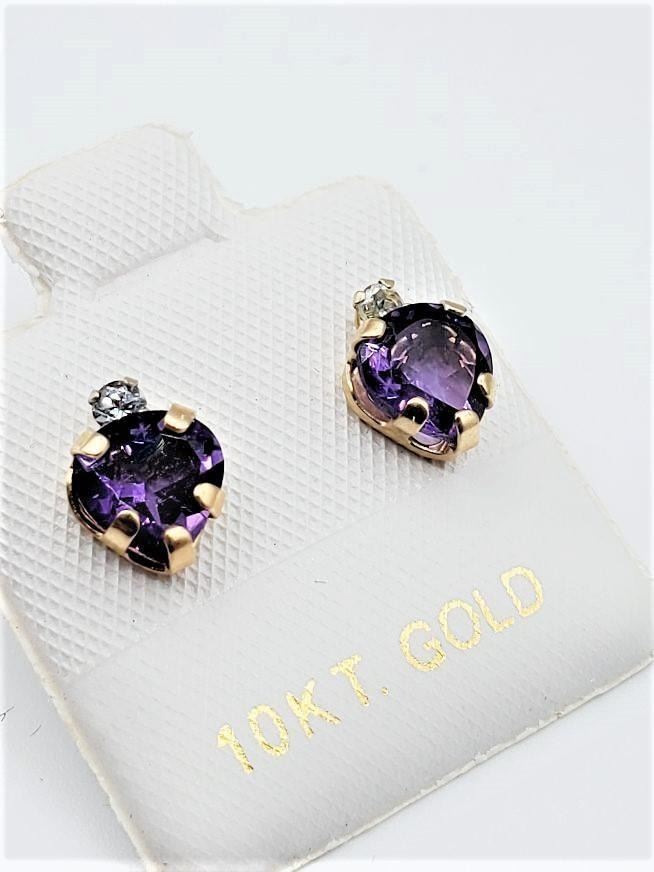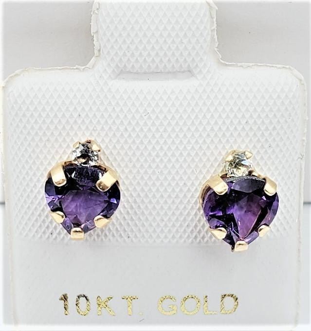 10KT Yellow Gold Natural Amethyst (1.15ct) with Natural Blue Topaz (0.10ct) Heart Shape Earring, W/A $460.00.