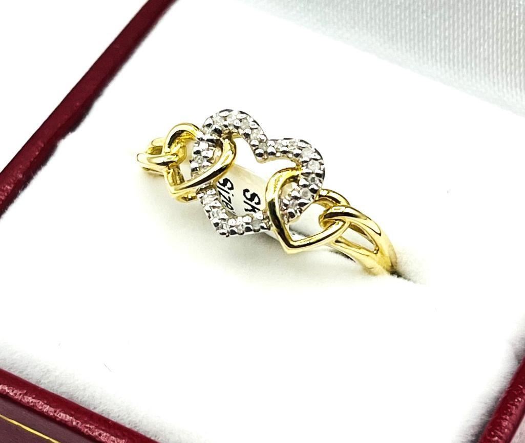 10KT Yellow Gold Natural Diamond (0.10ct) Heart Shape Ring, Size 8, W/A $1775.00.