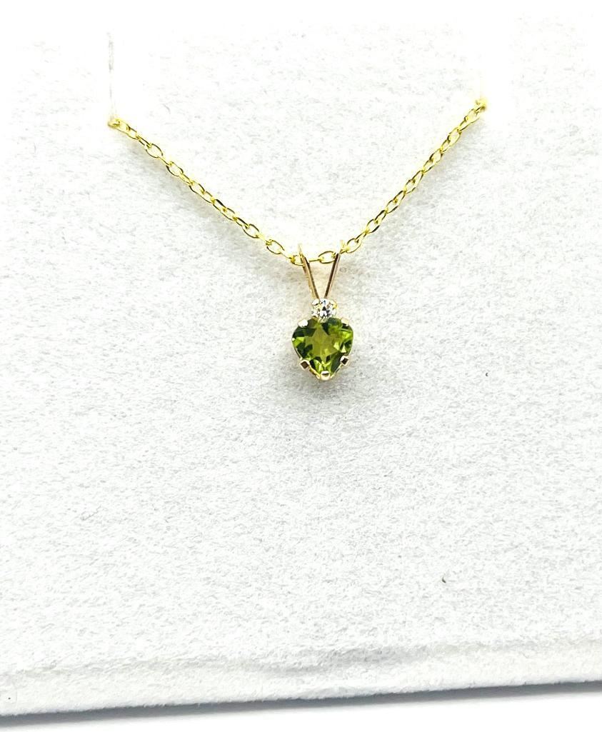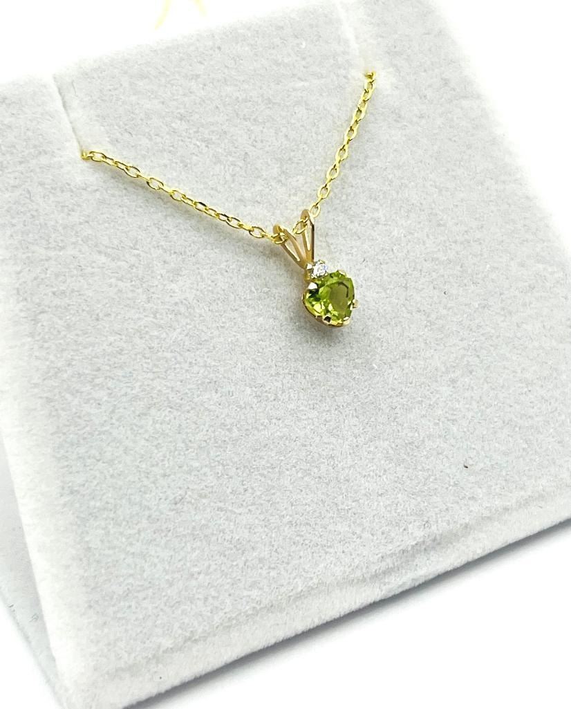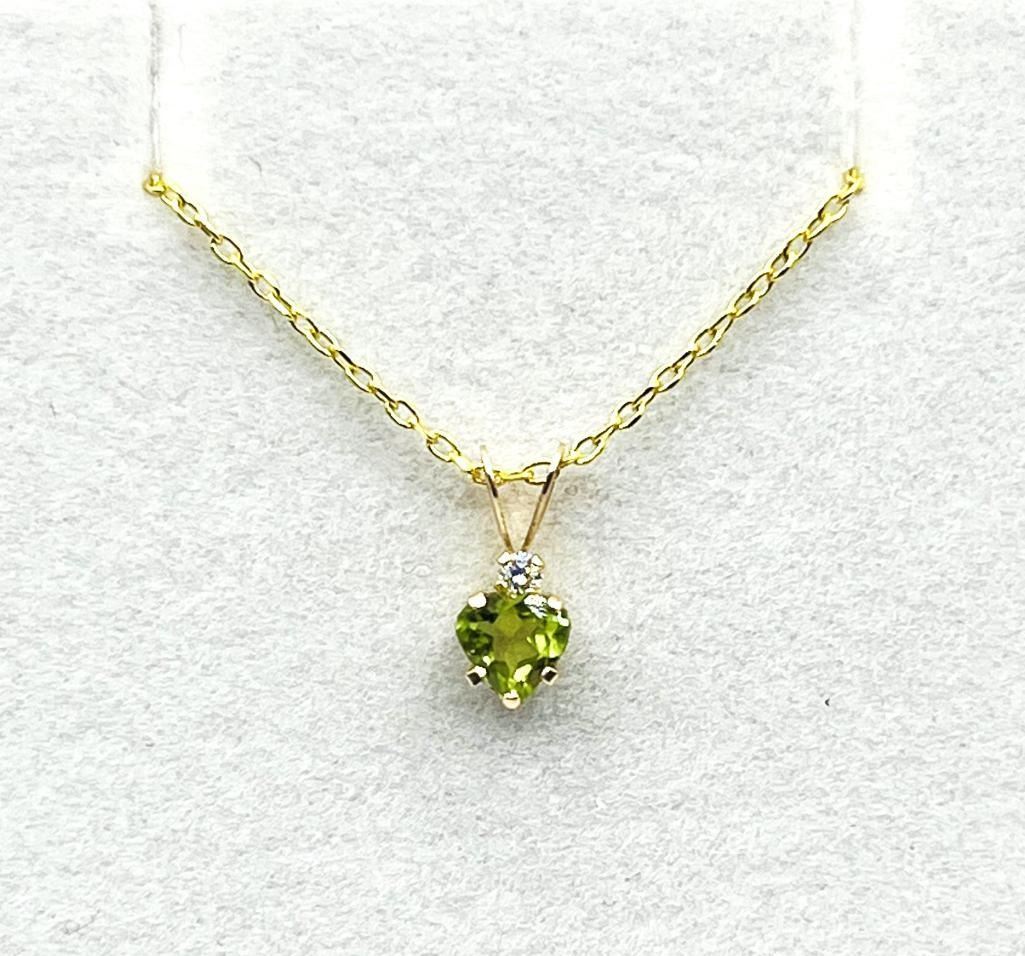 10KT Yellow Gold Natural Peridot Pendant with Gold Plated Sterling Silver Chain, Retail $400.00. Peridot is the birthstone for August.