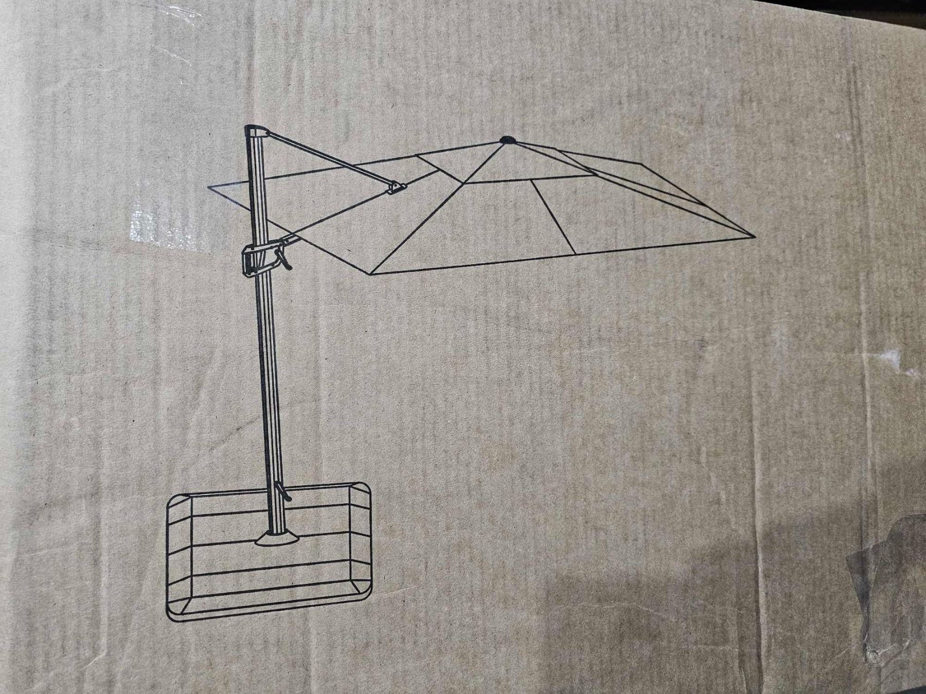 10x13' Offset Patio Umbrella With Base - Light Blue ****Not Exact as Stock Photo***
