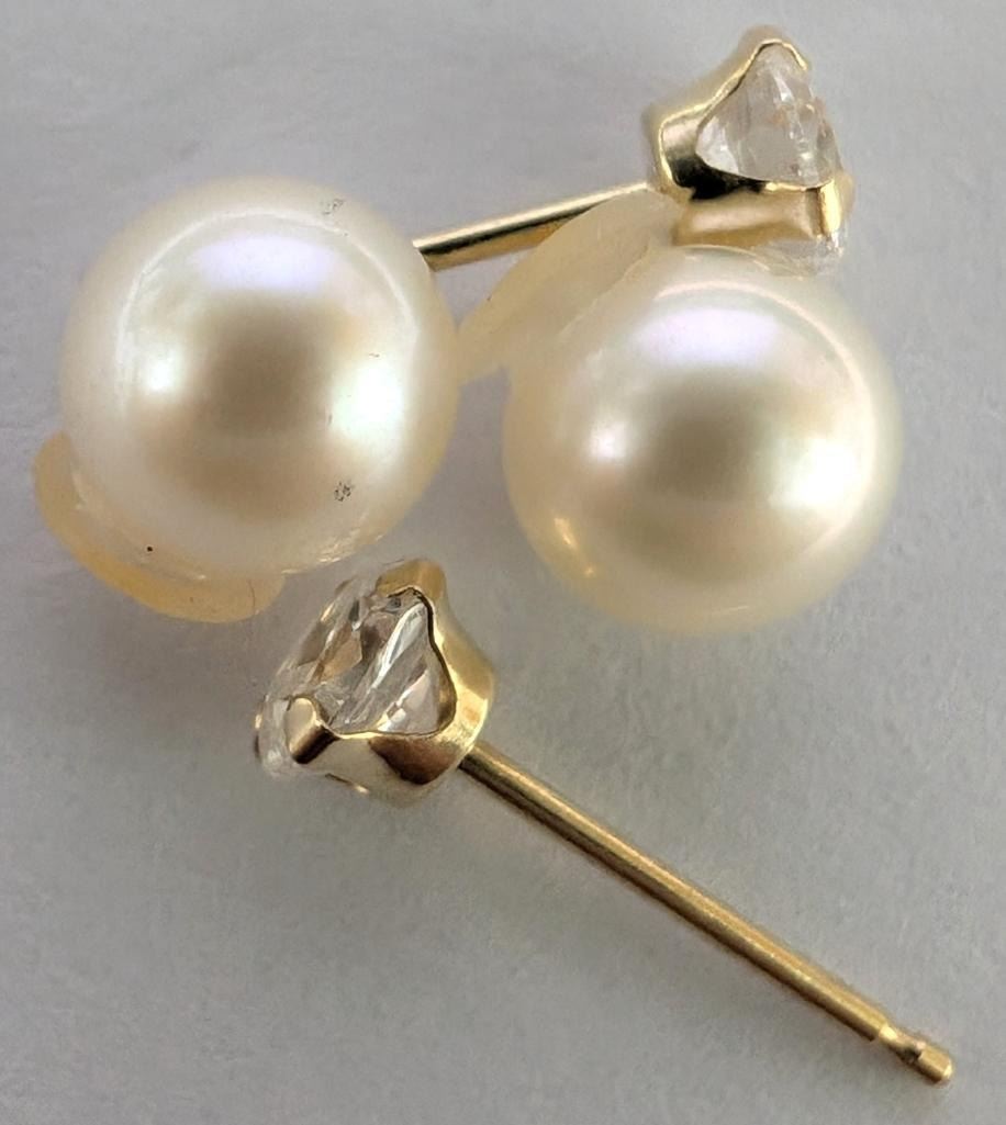 14K Yellow Gold Cz And Pearl 2In1 Earrings (~Size 0) (~length 0 inches), Suggested Retail Value $120