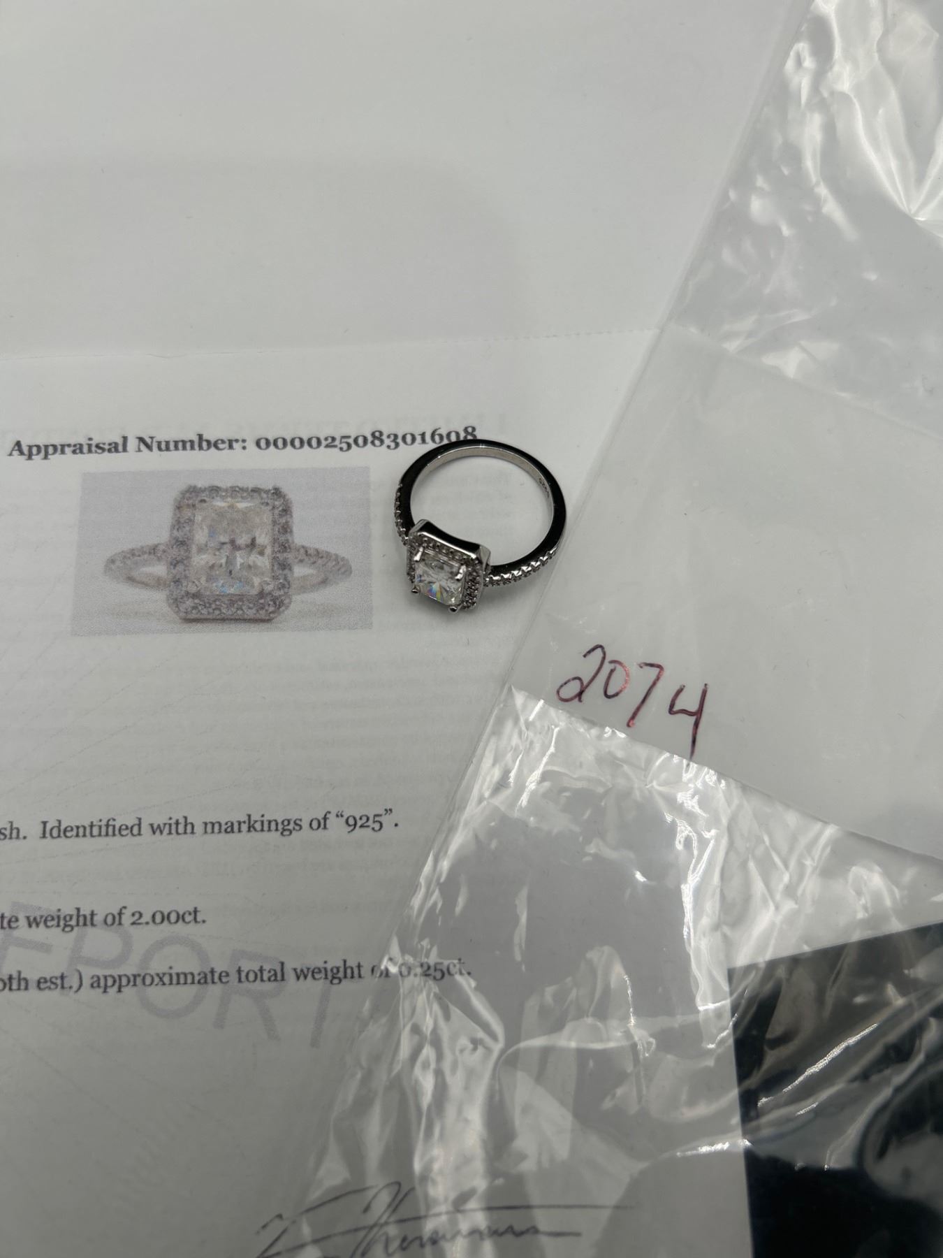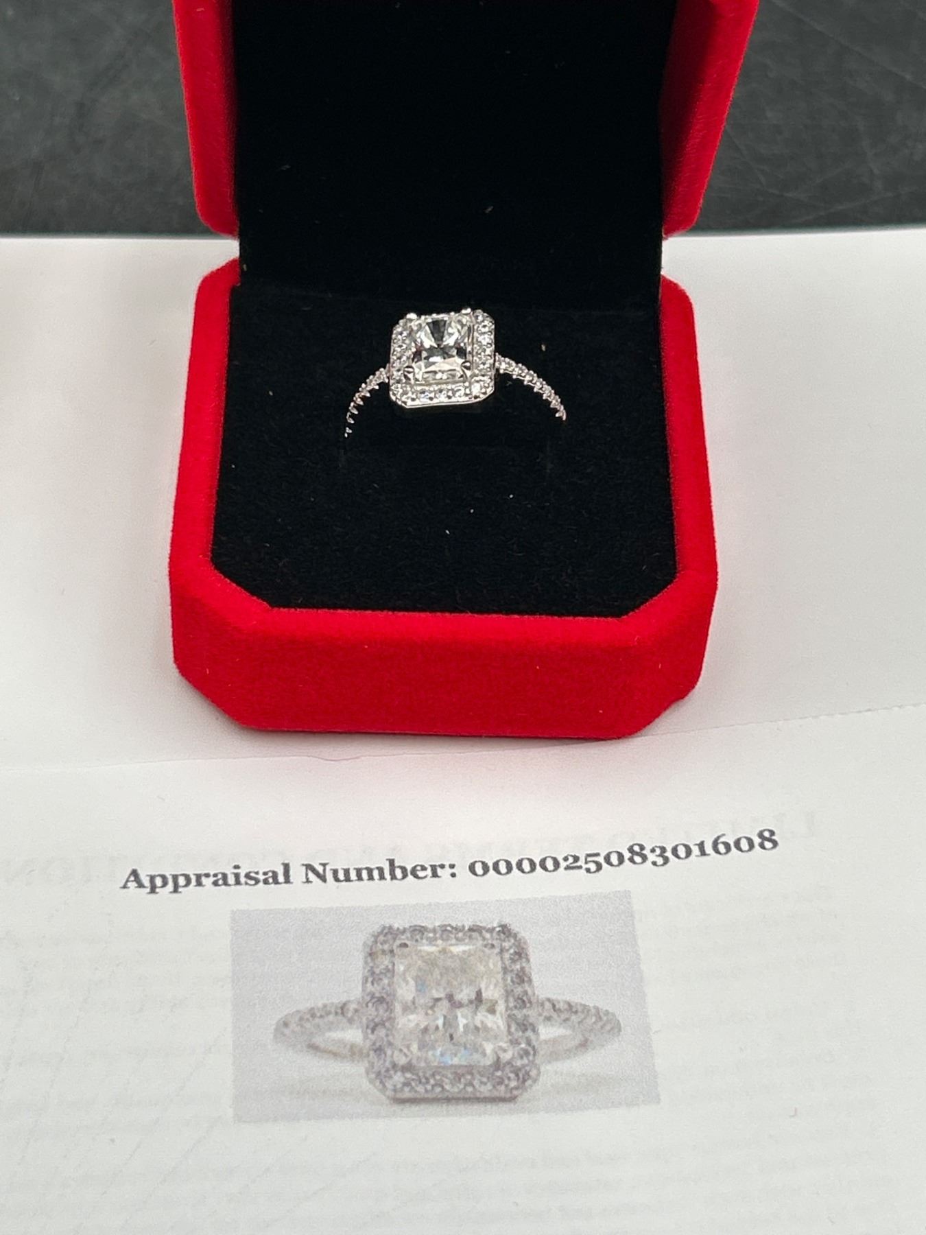 $1450 APPRAISED RADIANT CUT 2.0 CARAT .925 SILVER RING
