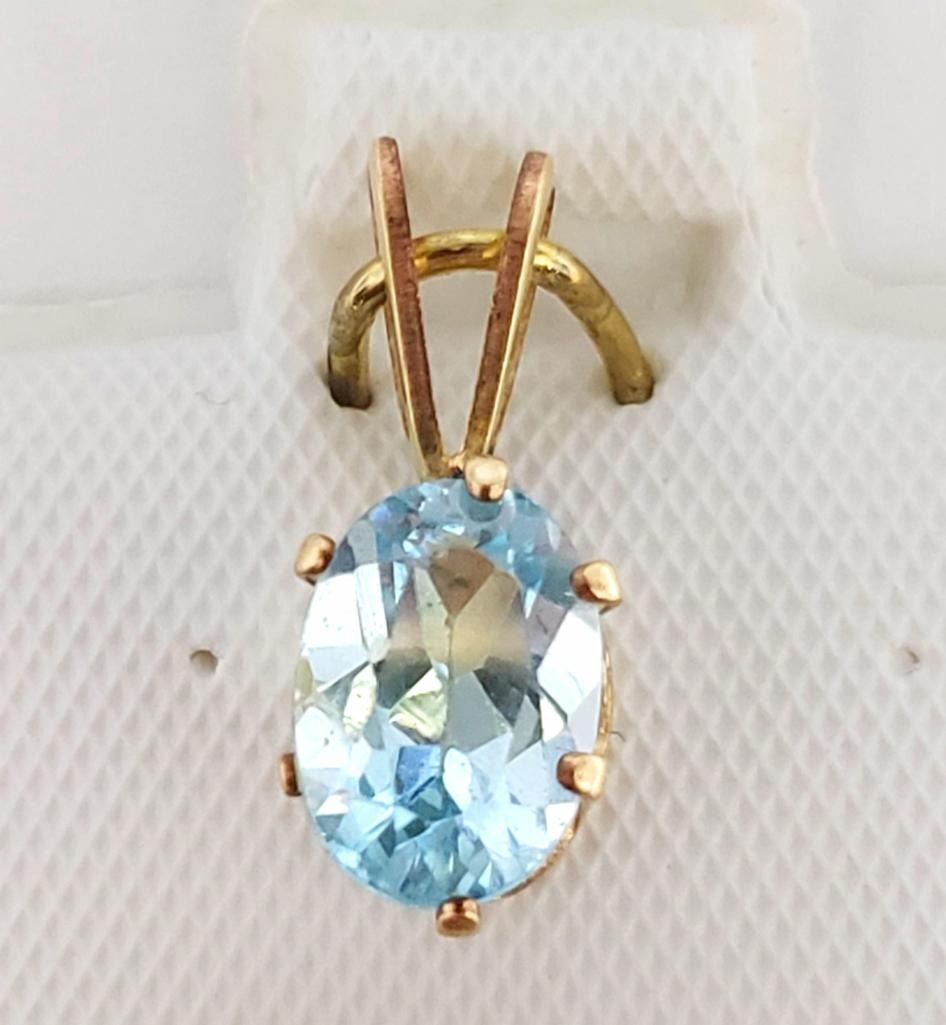 14K Gold Filled Blue Topaz(0.8ct) Pendant, Made in Canada, Suggested Retail Value $80