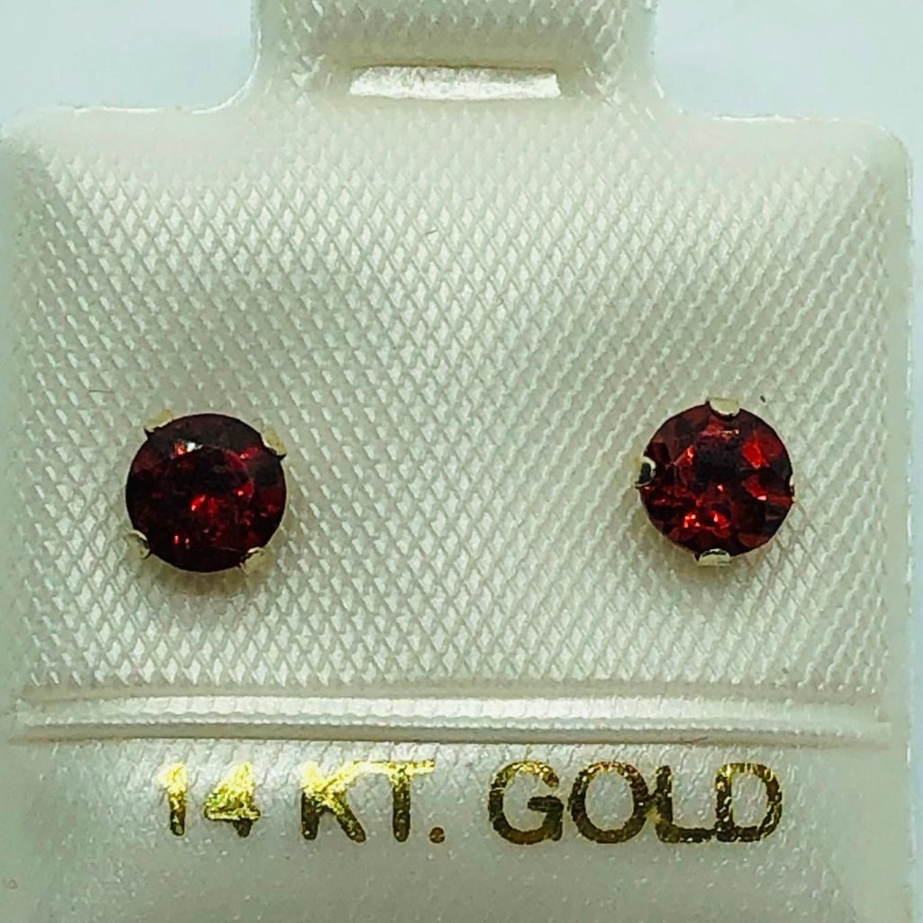 14K Gold Garnet Earrings, Made in Canada, Suggested Retail Value $100