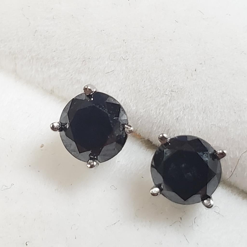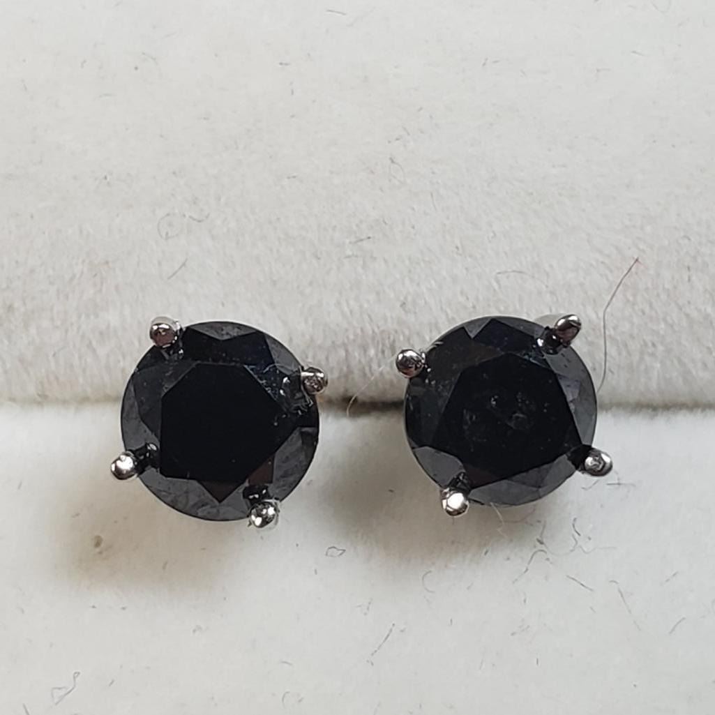 14K White Gold Black Diamond(1.1ct) Earrings (~weight 0.82g), Made in Canada, Suggested Retail Value $1545 (Estimated Selling Price from $120 to $240)