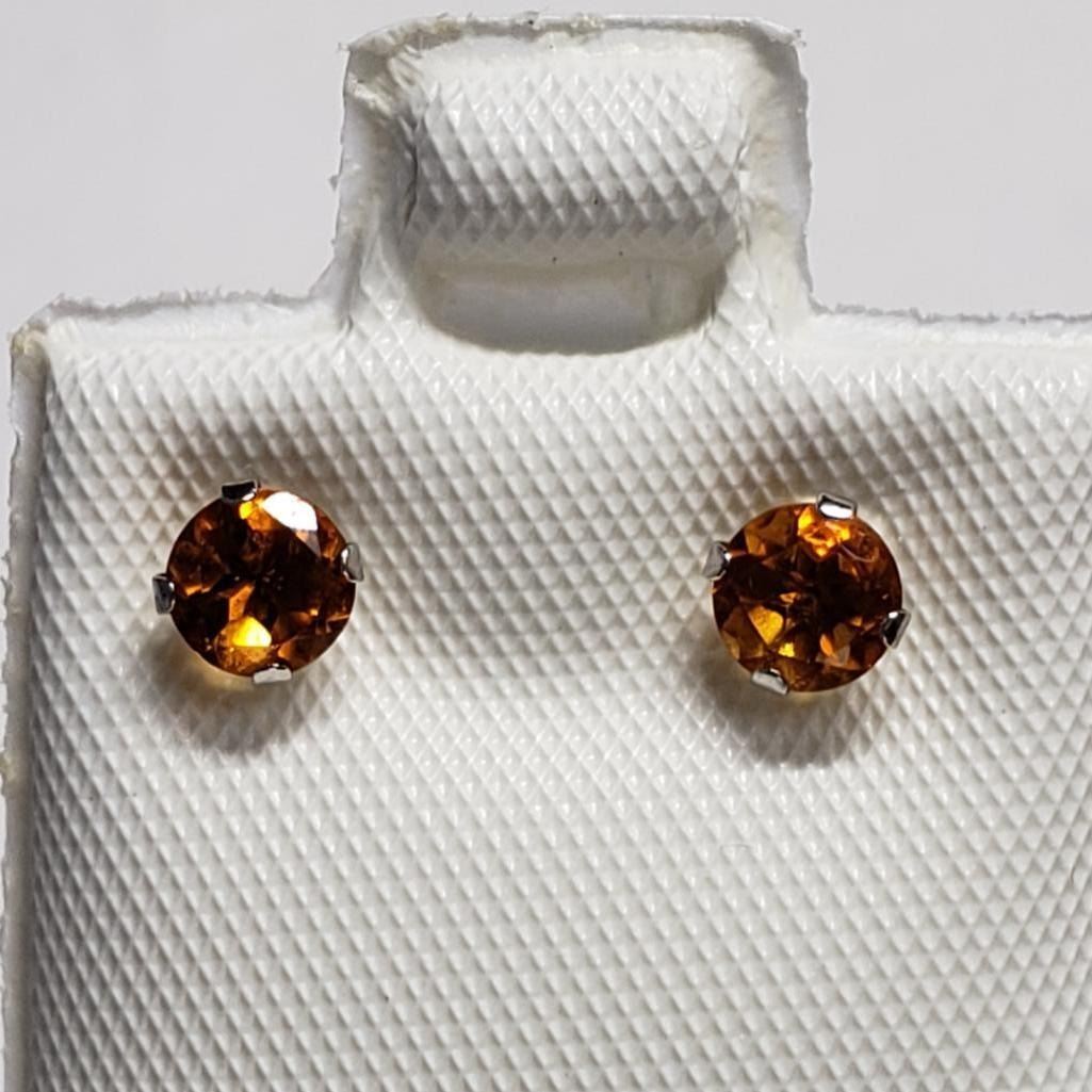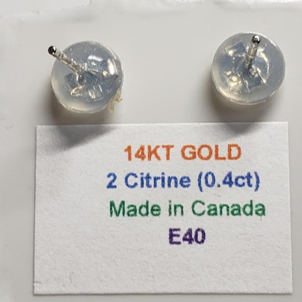 14K White Gold Citrine(0.4ct) Earrings, Made in Canada, Suggested Retail Value $80