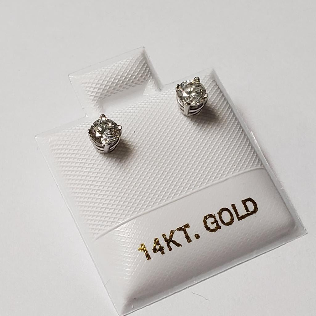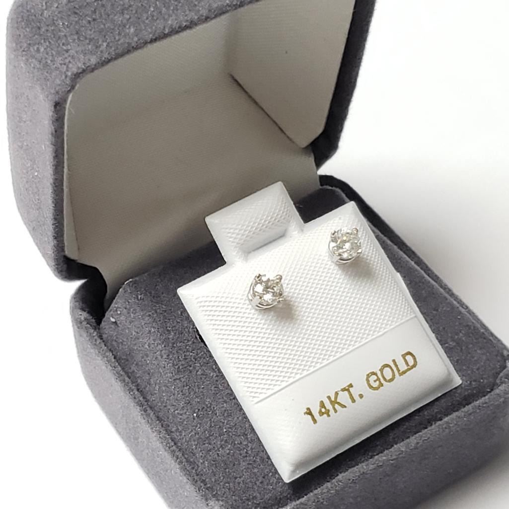 14K White Gold Diamond (0.42Ct,Si2-I1,F-G) Earrings (~weight 0.49g), Made in Canada, Appraised Retail $2015