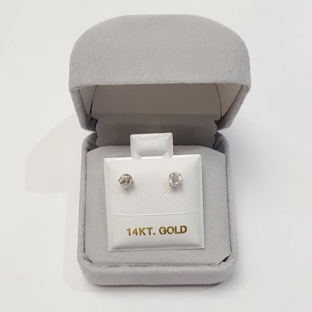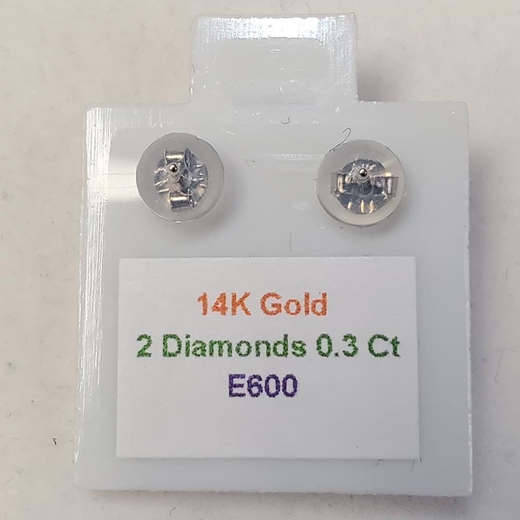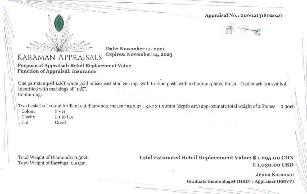 14K White Gold Diamonds(0.3Ct,I1-I3,F-G) Earrings, Made in Canada, Appraised Retail $1295