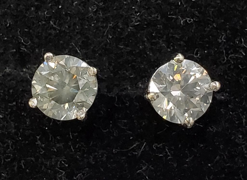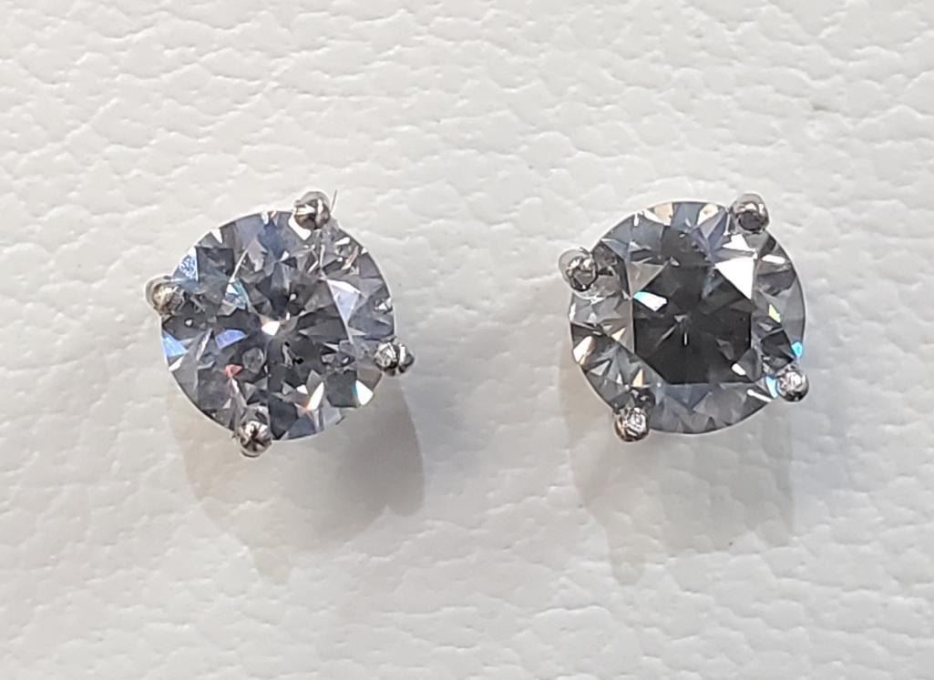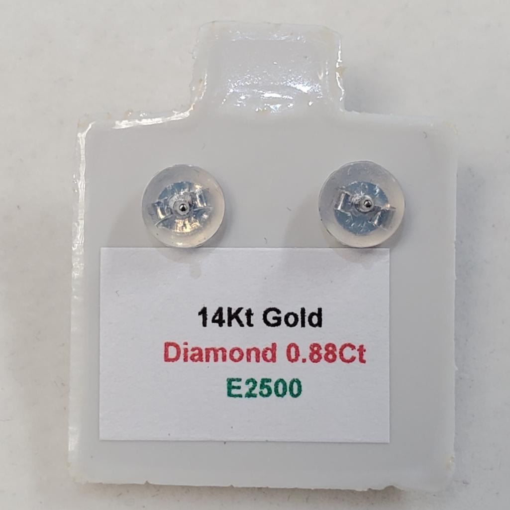 14K White Gold Diamonds(0.88Ct,Si2-I1,G-H) Unisex Cast Stud Earrings (~weight 0.78g), Made in Canada, Appraised Retail $4320