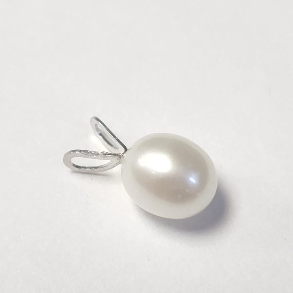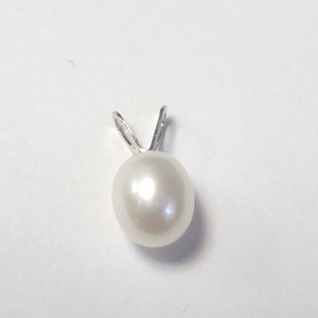 14K White Gold Fresh Water Pearl Pendant (~Size )(Ring is resizable for $40) (~length inches), Suggested Retail Value $160