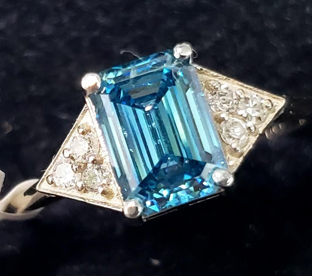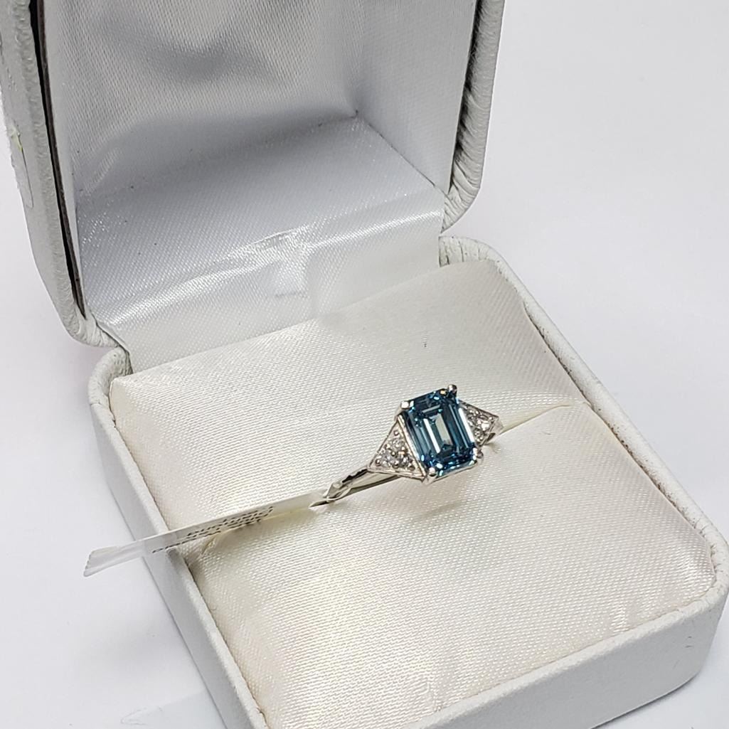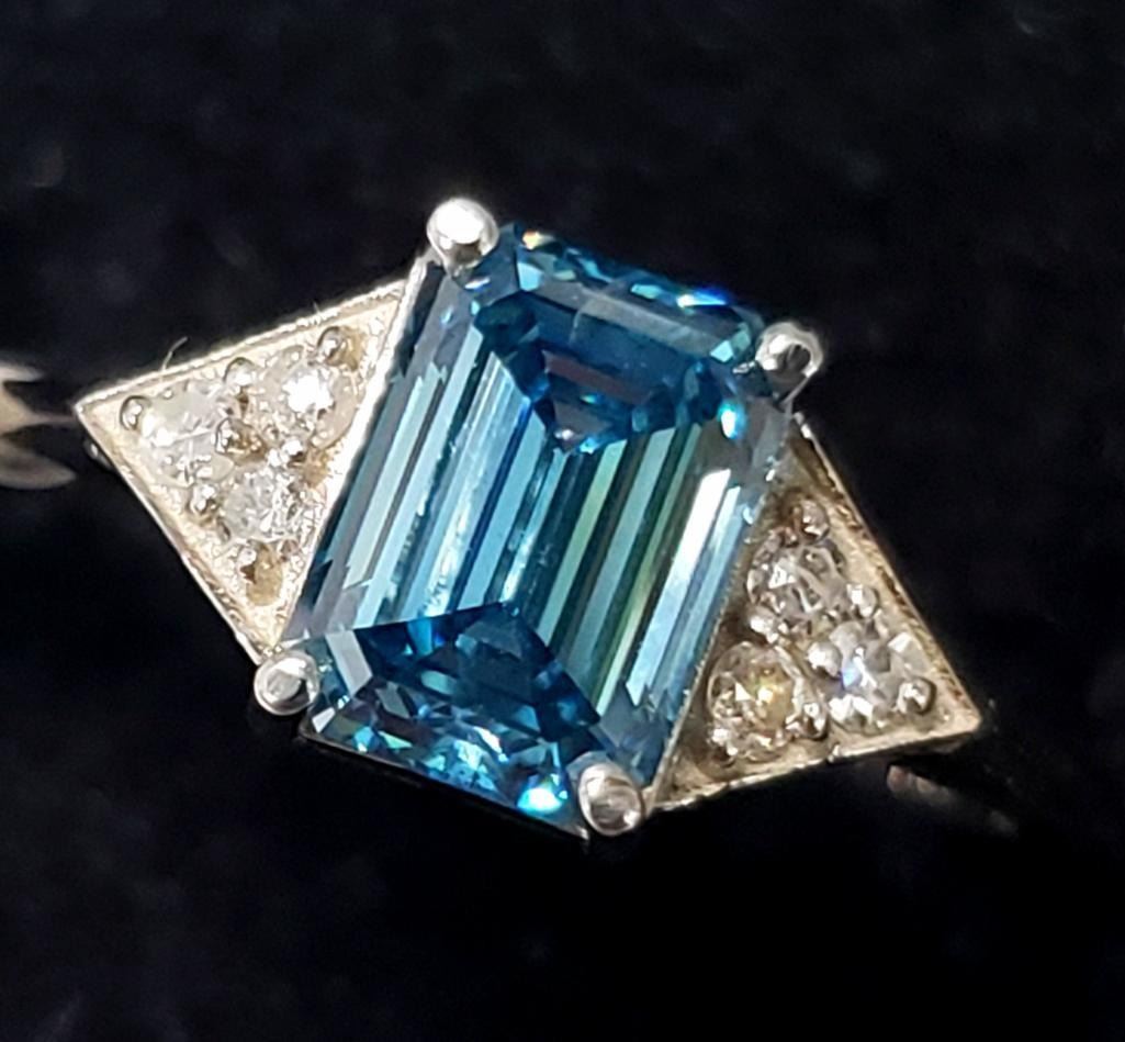 14K White Gold Lab Blue & Natural Diamond 1.6+0.06Ct Ring (~Size 6.5) APPRAISED $6100.00