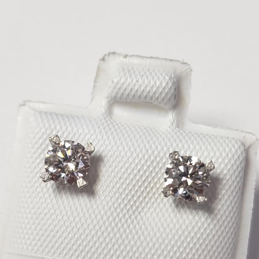 14K White Gold Lab Grown Diamond (0.64Ct,Vs1-2,Very Light Pink) Earrings  (~weight 0.62g), Made in Canada, Appraised Retail $2685