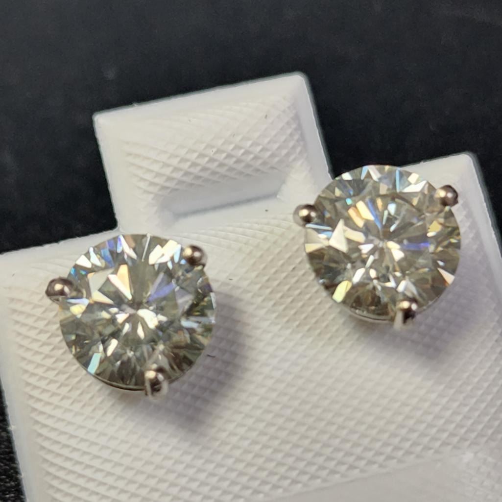 14K White Gold Moissanite(2.8ct) Earrings (~weight 1.3g), Made in Canada, Appraised Retail $1555