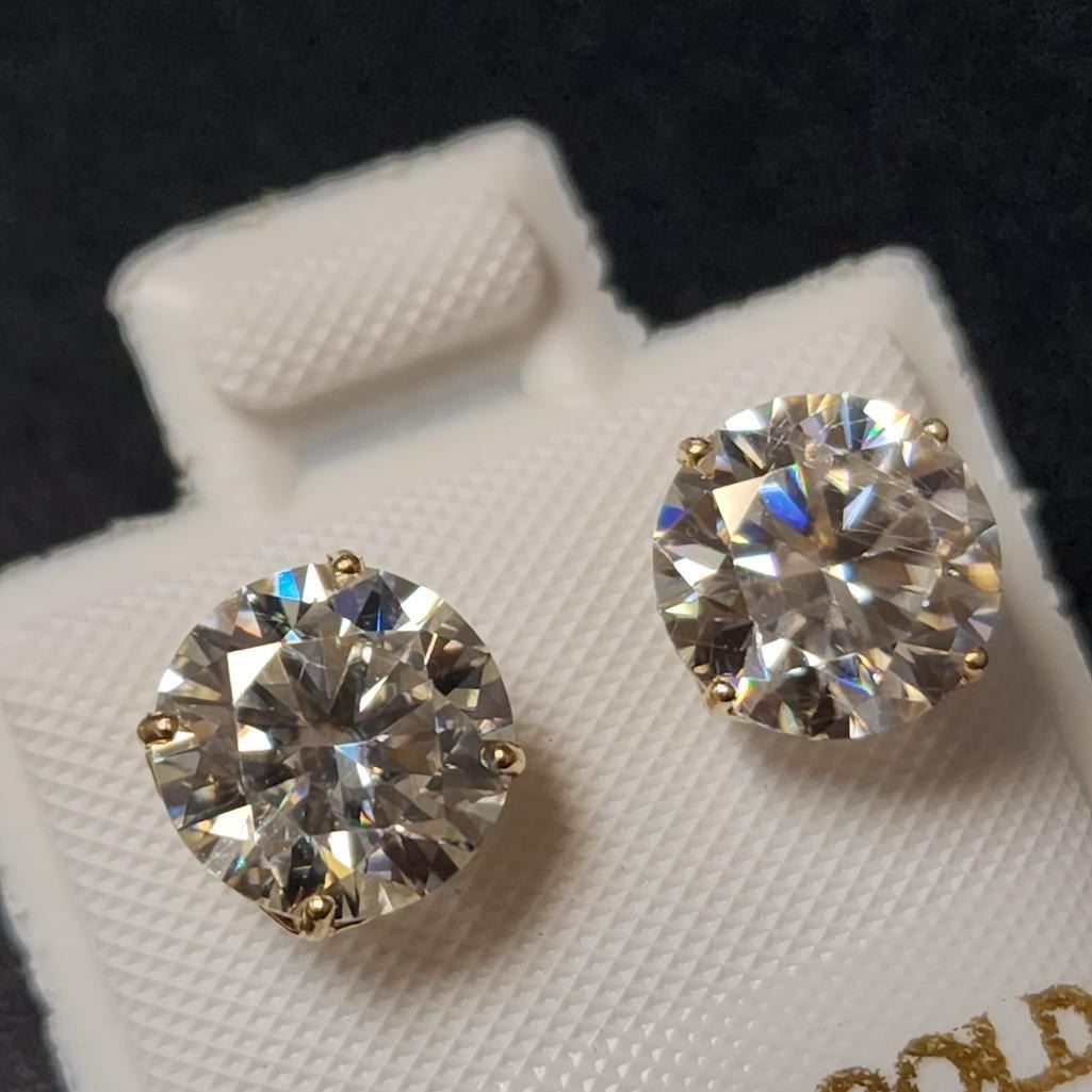 14K Yellow Gold 2 Moissanites(2.58ct) Earrings  (~weight 1.06g), Made in Canada, Appraised Retail $1335