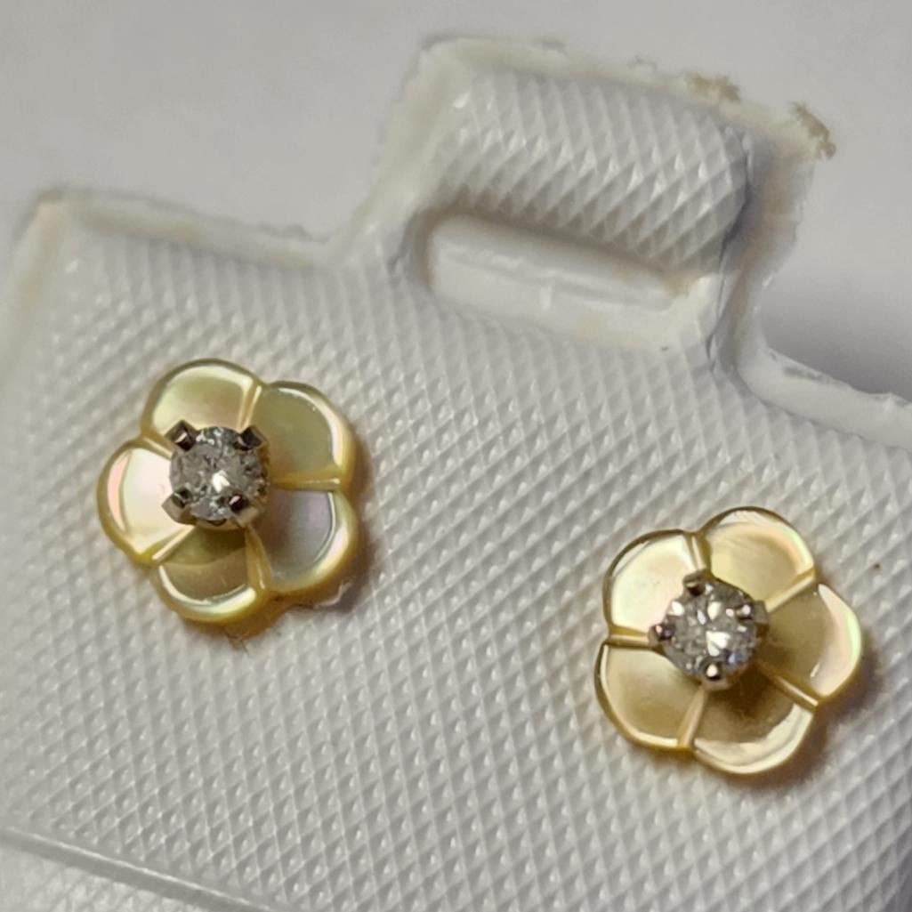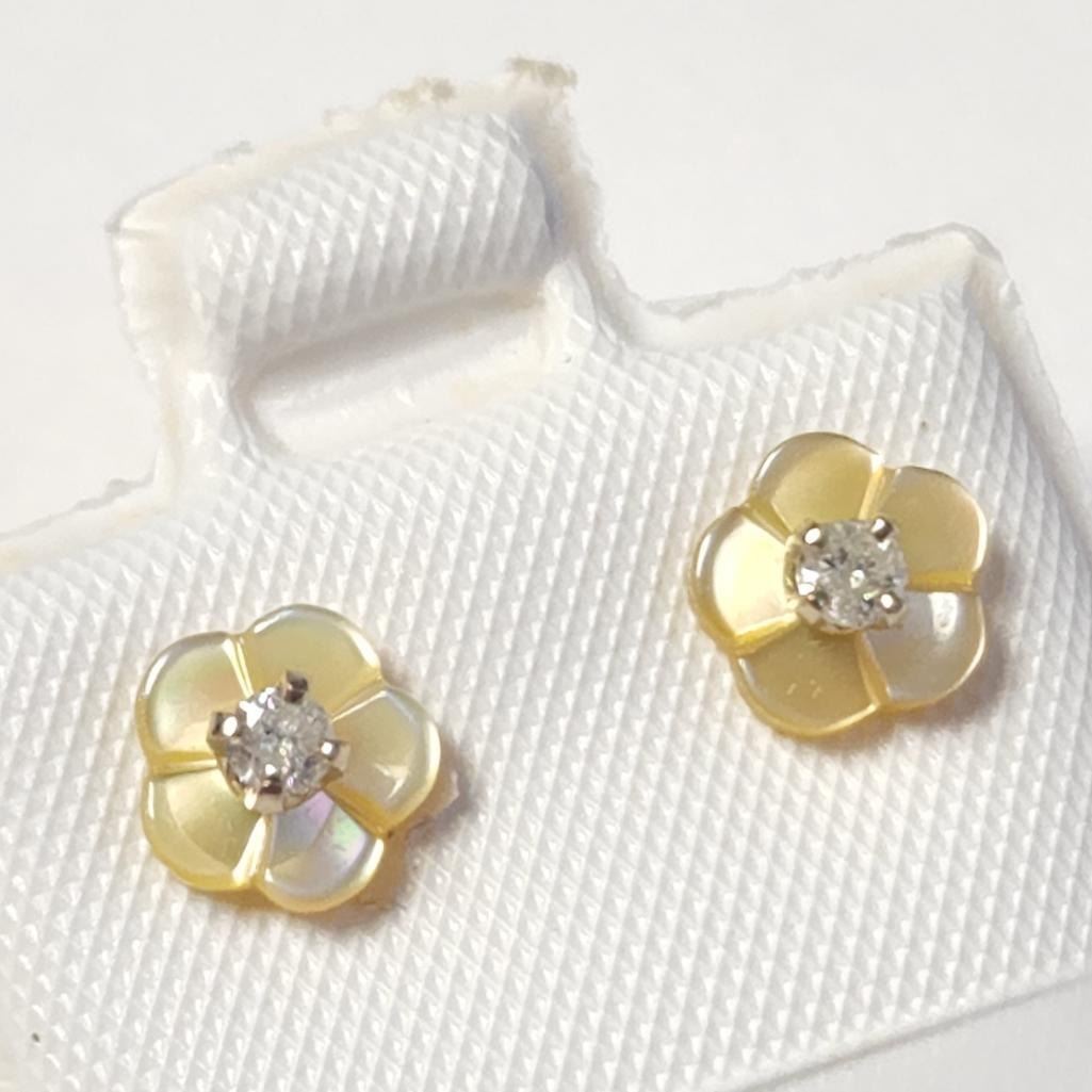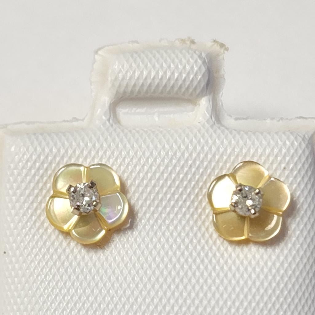 14K Yellow Gold Diamond(0.01ct) Earrings (~Size )(Ring is resizable for $40) (~length inches), Made in Canada, Suggested Retail Value $200