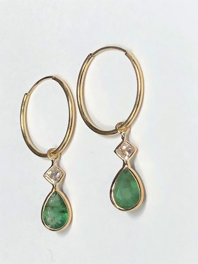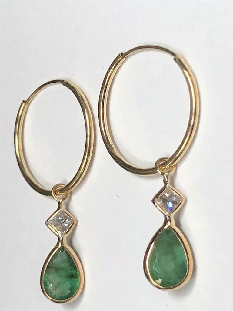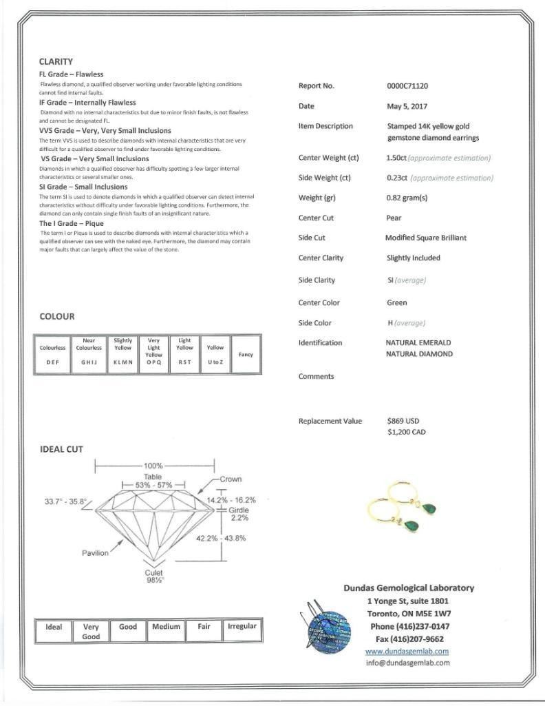14K Yellow Gold Emerald(1.5ct) Diamond(0.23ct) Earrings (~weight 0.82g), Made in Canada, Appraised Retail $1200 (Estimated Selling Price from $180 to $360)