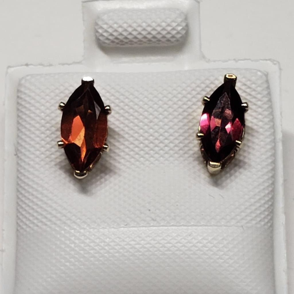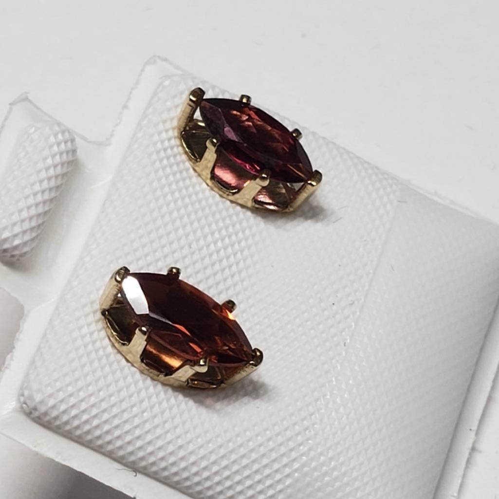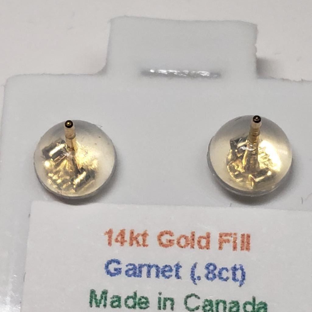 14K Yellow Gold Garnet(0.8ct) Earrings, Made in Canada