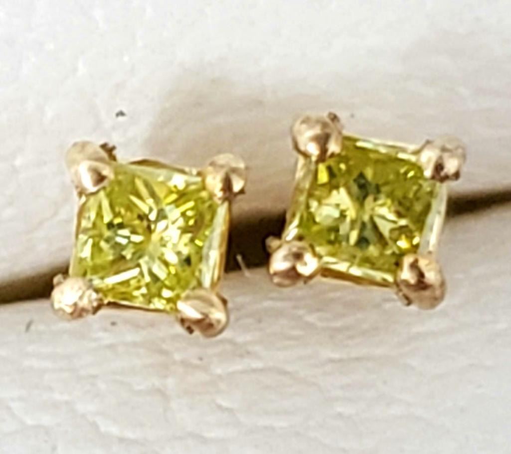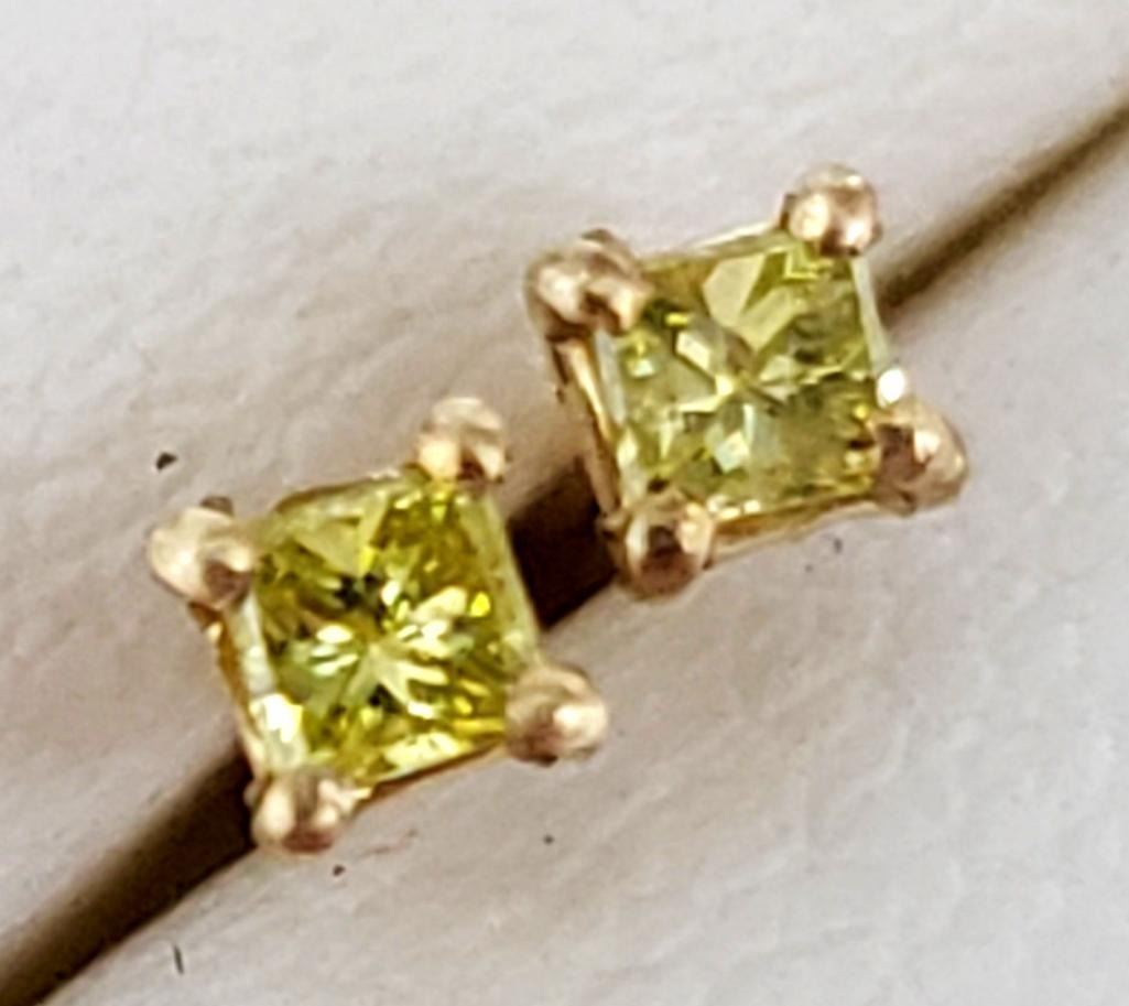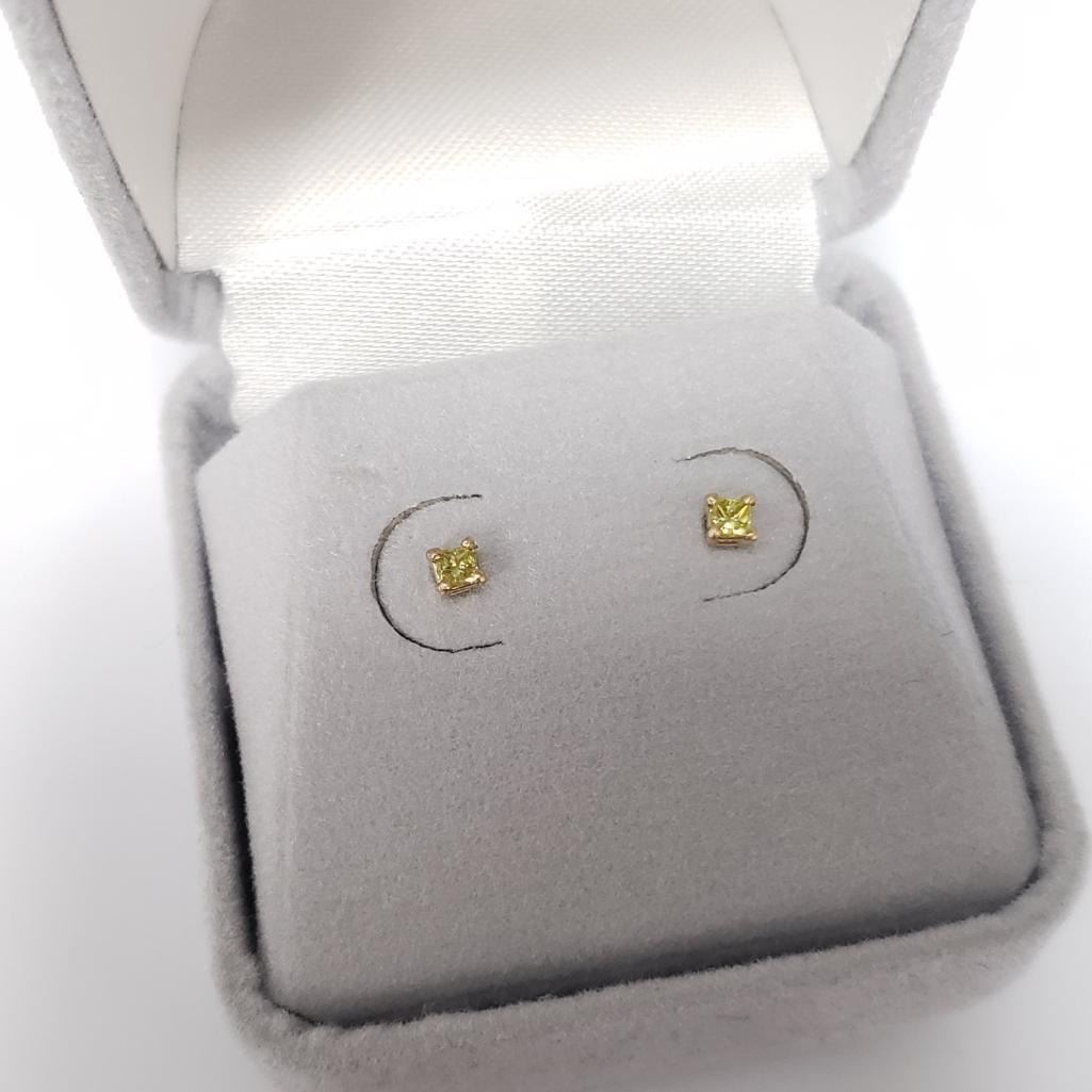 14K Yellow Gold Natural Yellow Diamond Princess Cut(0.08ct) Earrings, Suggested Retail Value $800